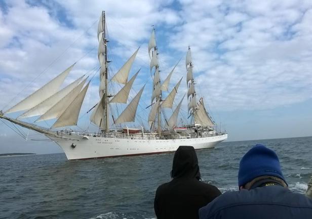 Na pokładzie praktykę przechodzi 130 studentów Wydziału Mechanicznego Akademii Morskiej w Gdyni. Zaokrętowali przed tygodniem w Londynie, gdzie „Dar” uczestniczył w zlocie żaglowców, cumując na Tamizie. Po wejściu do Gdyni, ta grupa studentów pozostanie jeszcze na statku przez 3 tygodnie, kontynuując zajęcia praktyczne, także podczas krótkich rejsów bałtyckich. Ostateczne zakończenie sezonu praktyk morskich - 7 października.