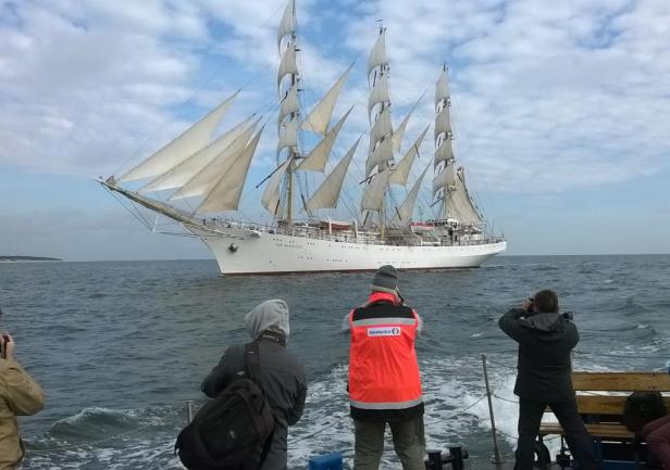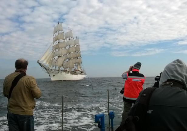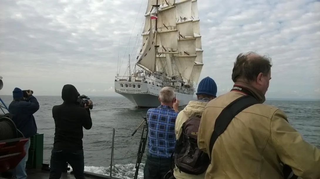 Dział Armatorski AMG wykorzystał powrót "Daru Młodzieży" z ostatniej tegorocznej zagranicznej podróży, do pokazania naszego flagowego żaglowca w pełnej krasie, defilującego pod żaglami do macierzystego portu. Zorganizowaliśmy rejs, w którym grupa fotoreporterów, na pokładzie statku Urzędu Morskiego w Gdyni "Tucana", wybrała się w rejon Helu na spotkanie z "białą fregatą".