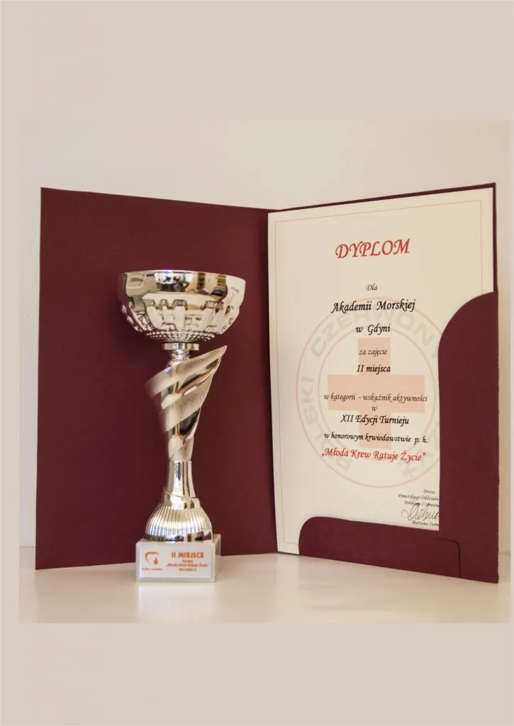 Akademia Morska w Gdyni, która reprezentowana była przez Parlament Studentów AMG, otrzymała dyplom za zajęcie II miejsca w kategorii wkaźnik aktywności i ilość akcji poboru krwi w XII Edycji Turnieju "Młoda Krew Ratuje Życie 2014 - 2015".