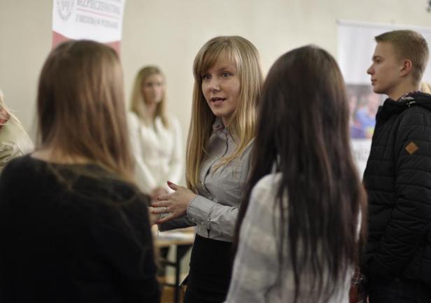 Uczniowie szkół ponadgimnazjalnych z chęcią podchodzili do stoiska informacyjnego uczelni. Zadawali pytania dotyczące rekrutacji, oferty edukacyjnej, mundurów i warunków studiowania.
