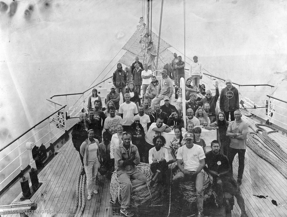 To był niezwykły eksperyment. Na jesienny rejs z Goteborga do Gdyni zaokrętował na „Dar Młodzieży” pan Andrzej Górski – człowiek zafascynowany XIX wieczną fotografią. Podczas rejsu wykonał, tradycyjną techniką tzw. mokrego kolodium z pionierskich lat fotografii , przy użyciu ponad 100-letniego aparatu, serię zdjęć ukazujących życie żaglowca.