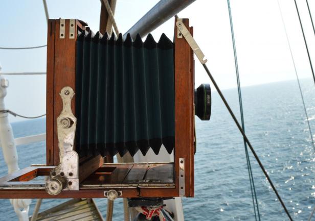 To wystawa unikatowa – 17 wielkoformatowych fotogramów, ukazujących życie na naszym żaglowcu – zrealizowanych archaiczną, XIX-wieczną fotograficzną techniką, przez pana Andrzeja Górskiego podczas rejsu „Darem Młodzieży”. Zastosowana technika tzw. „mokrej płyty” dominowała w fotografii drugiej połowy XIX wieku. Gotowe czarno-białe fotogramy zachowują niepowtarzalny klimat, plastykę i urok artystycznych grafik.