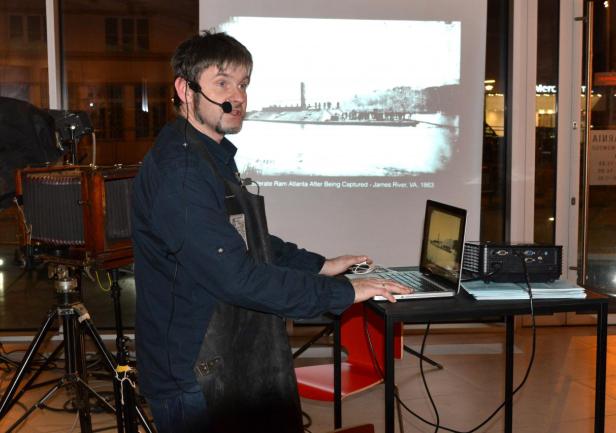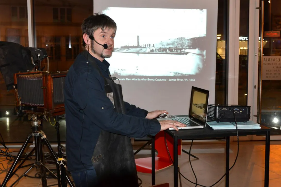 Wystawa nad którą patronat objął JM Rektor AMG prof. dr hab. inż. Janusz Zarębski eksponowana jest w galerii Gdyńskiego Centrum Filmowego. Wernisaż połączony był z prezentacją i warsztatem fotograficznym wszechstronnie omawiającym historię oraz technikę tzw. „mokrego kolodium” w której wykonano fotografie. Zaimprowizowane w galerii studio umożliwiło praktyczną prezentację techniki fotografowania i całego procesu technologicznego - chemicznej obróbki naeksponowanych płyt szklanych. Portretowanymi modelami byli uczestnicy wernisażu – pierwszym, patron wystawy – profesor Janusz Zarębski.