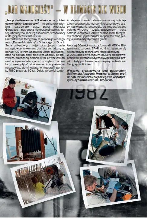 Praca fotografa na „Darze Młodzieży”, operowanie 100-letnim, ciężkim aparatem w warunkach niestabilnego pokładu, fotografowanie nawet z masztów, dało niezwykły efekt. Przeniosło „Dar Młodzieży” w świat wielkich żaglowców XIX wieku. Jednocześnie wymagało od fotografa obok plastycznej wrażliwości, uporu i determinacji w poznawaniu tajników historycznej techniki, także fizycznej sprawności – waga kompletnego sprzętu - aparat, statyw, przenośna ciemnia, płyty szklane, odczynniki, przekracza 100 kg.