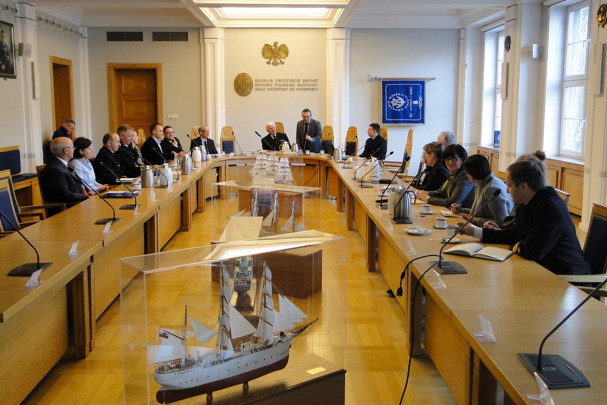 Spotkanie rozpoczęło się prezentacją dyrektora Adama Mikołajczyka, w której przedstawił on genezę oraz etapy definiowania ISP. Dyrektor Mikołajczyk podkreślał fakt, że w województwie pomorskim proces wyłaniania inteligentnych specjalizacji miał charakter oddolny, inny niż miało to miejsce w innych regionach kraju. W definiowaniu ich uczestniczyły środowiska biznesowe i naukowe, powiązane w partnerstwa i zainteresowane rozwijaniem określonych specjalizacji. Pan Dyrektor podziękował za wyraźne zaangażowanie Akademii Morskiej w dotychczasowy proces.
