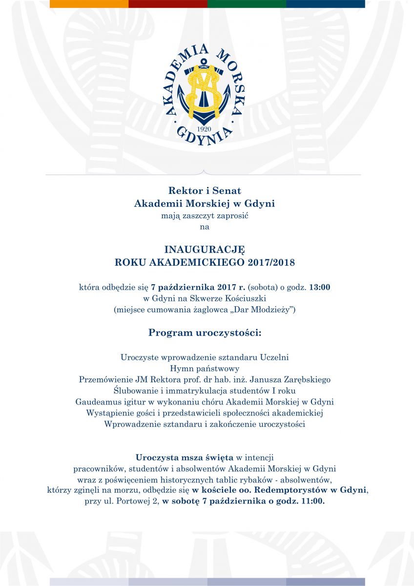 INAUGURACJĘ ROKU AKADEMICKIEGO 2017/2018