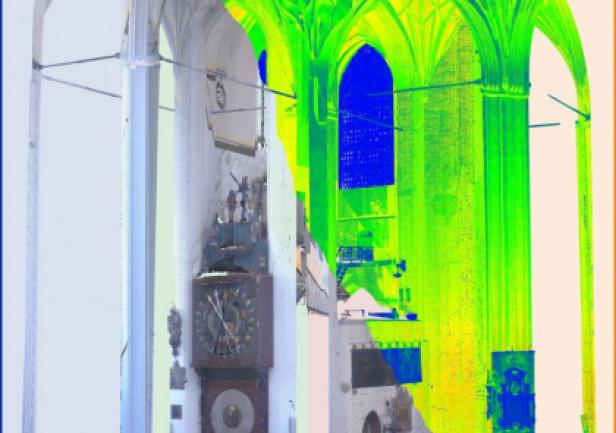 Bazylika Mariacka, największa ceglana świątynia gotycka Europy, wymagała zaplanowania lokalizacji aż 40 stanowisk pomiarowych w sposób zapewniający minimalizację cieni, tj. obszarów, do których wiązka lasera nie jest w stanie dotrzeć.