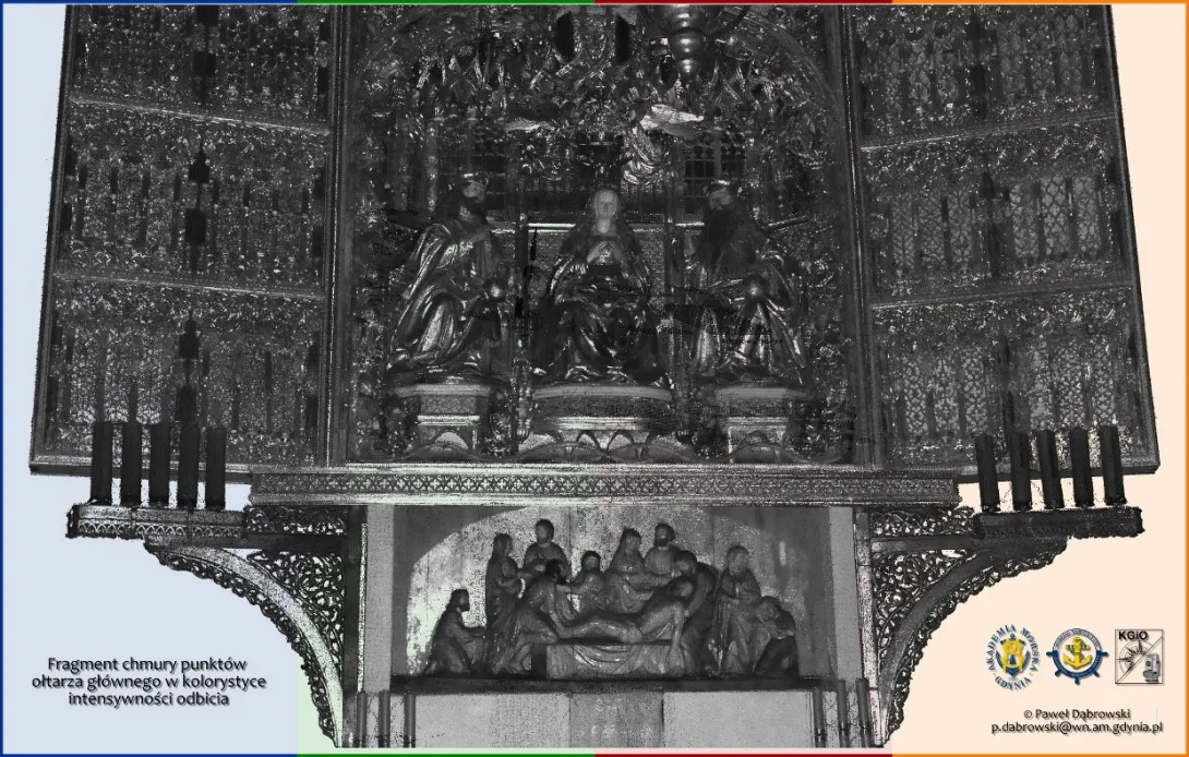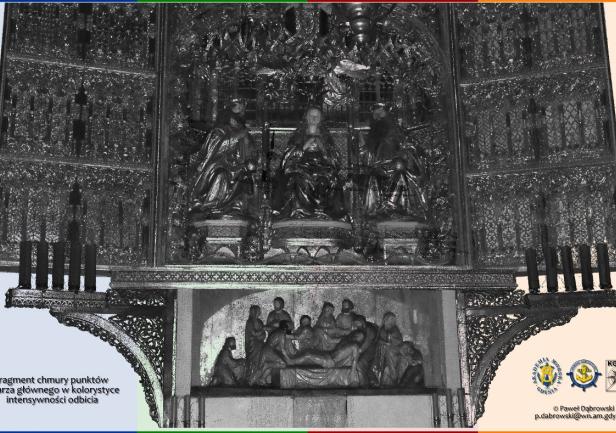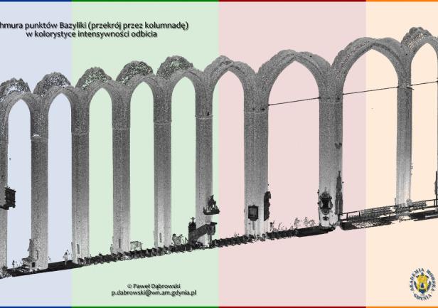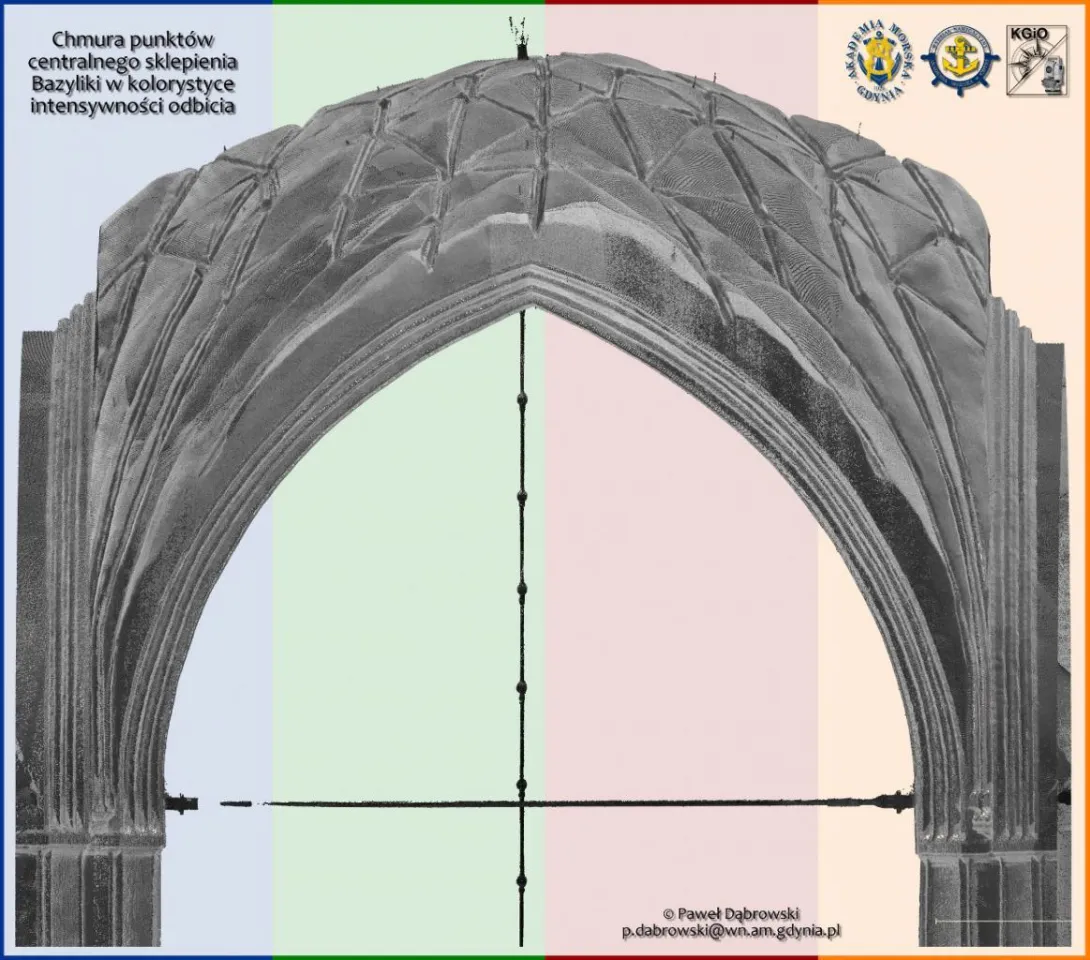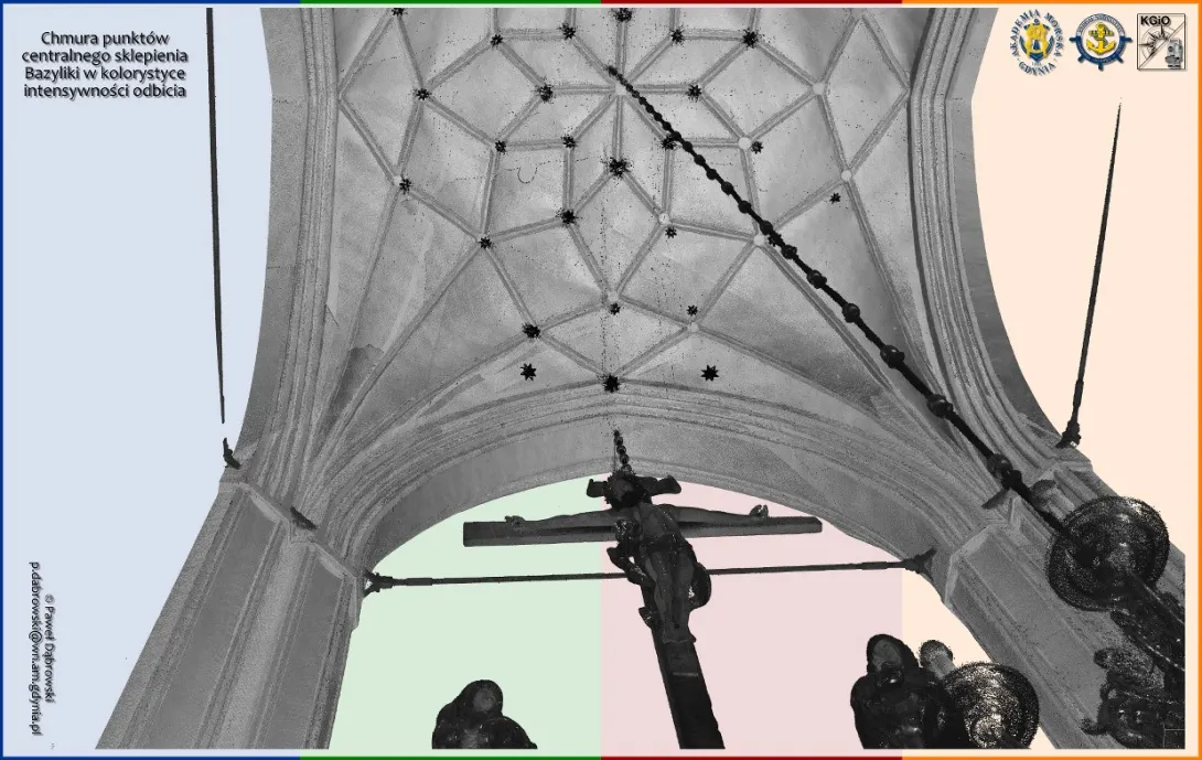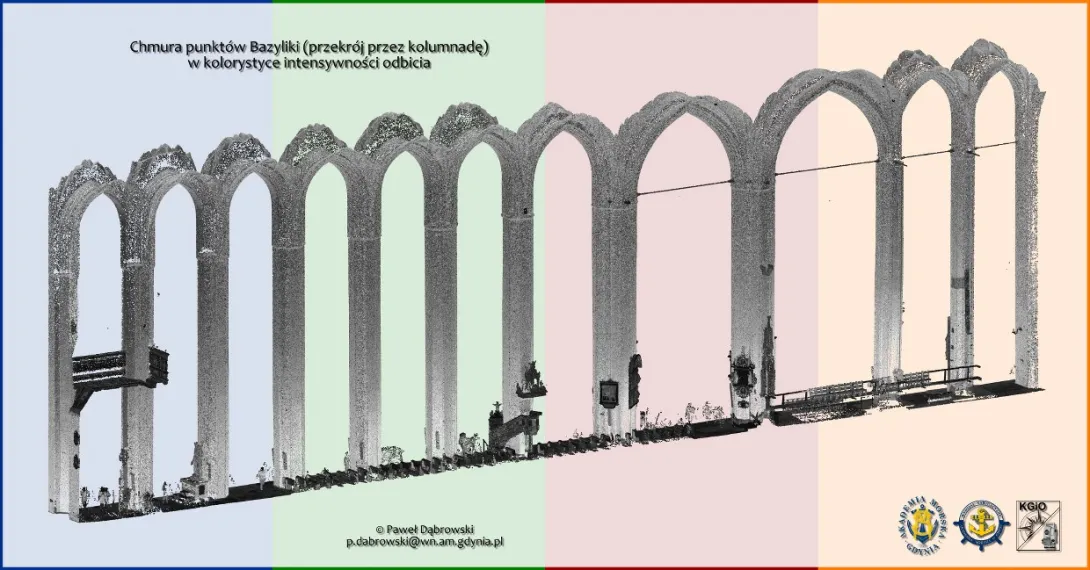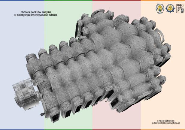 Dziesiątki gigabajtów danych połączono w oprogramowaniu Trimble RealWorks w spójną całość. W rezultacie uzyskano niezwykle bogaty zbiór danych przestrzennych (geo-danych) dotyczących wnętrza monumentalnej Bazyliki. Otrzymana chmura punktów będzie przedmiotem prac i analiz badawczych Katedry w dziedzinie skaningu laserowego.