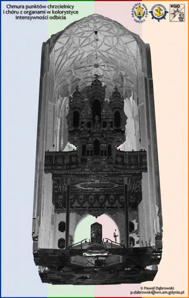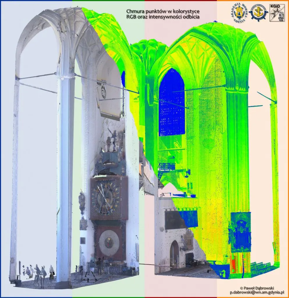 23 sierpnia 2017 r. Paweł Dąbrowski, asystent w Katedra Geodezji i Oceanografii na Wydziale Nawigacyjnym, wraz z przedstawicielem firmy Geotronics Dystrybucja Sp. z o.o., Panem Bartoszem Balcerem, wykonali pomiar wnętrza Bazyliki Mariackiej w Gdańsku. Do pomiarów użyli skanera laserowego Trimble TX8.
