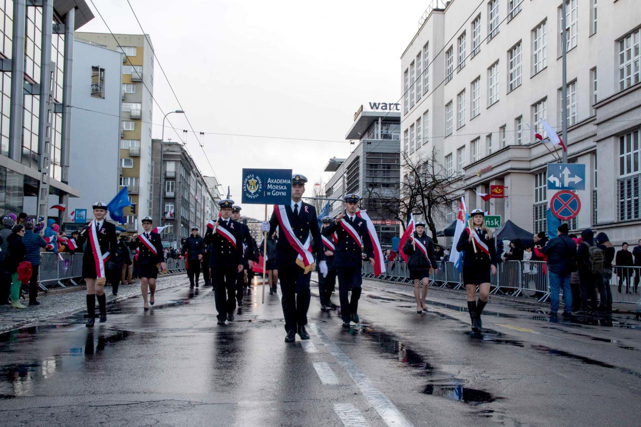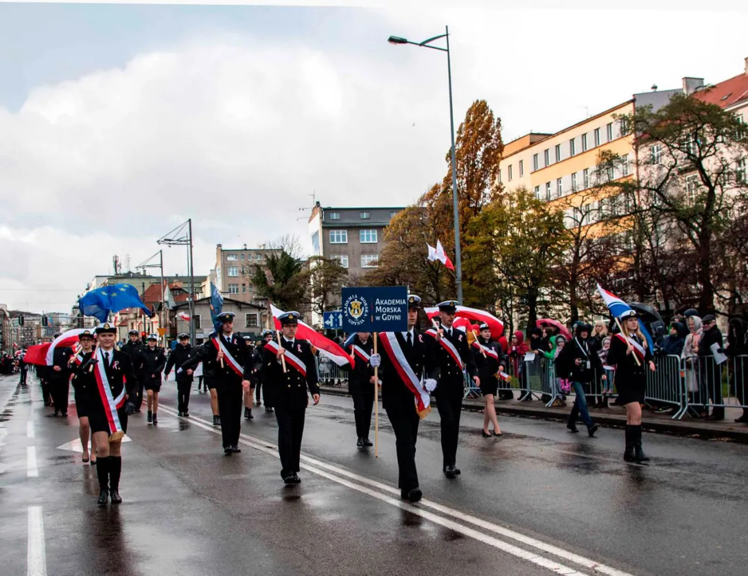 Podczas Parady Niepodległości prezentowały się szkoły, instytucje i organizacje społeczne. Akademia Morska w Gdyni stanowiła jedną z najliczniejszych grup biorących udział w przemarszu. Wszystko dzięki naszym studentom i pracownikom, którzy licznie przybyli by wraz z mieszkańcami Gdyni świętować niepodległość.