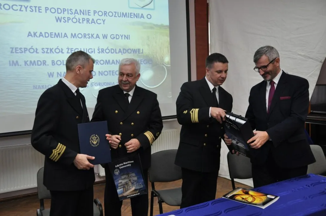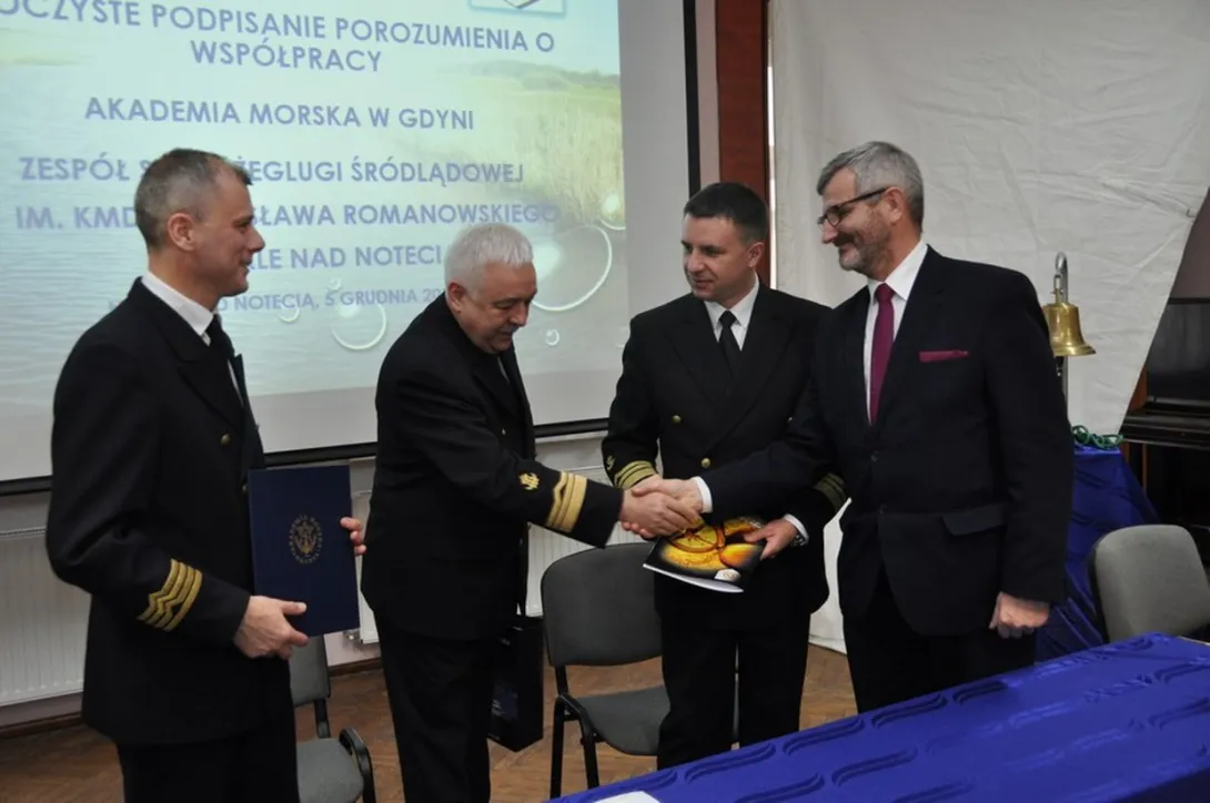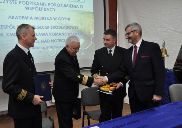 W dniu 05 grudnia 2017r. w Zespołe Szkół Żeglugi Śródlądowej im. kmdr. Bolesława Romanowskiego w Nakle nad Notecią miała miejsce uroczystość podpisania porozumienia o współpracy pomiędzy Akademią Morską w Gdyni a Zespołem Szkół Żeglugi Śródlądowej im. kmdr. Bolesława Romanowskiego w Nakle nad Notecią.
