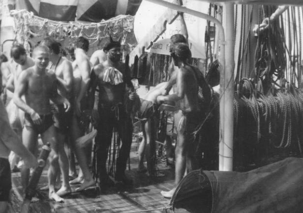 Tak świętowano 95 lat temu na "Lwowie" - a pierwszy równik "Dar Młodzieży" zaliczył 35 lat temu - 16 grudnia 1983 roku podczas słynnej podróży na zlot żaglowców Osaka 83. Prezentujemy wybór fotografii uczestników tamtej podróży. Ciekawe jak przywitano Neptuna podczas Rejsu Niepodległości. Wielokrotnie nasze żaglowce szkolne "Dar Pomorza", "Dar Młodzieży" przecinały linię równika - 26 lipca 2018 roku dopisujemy kolejny równikowy chrzest.