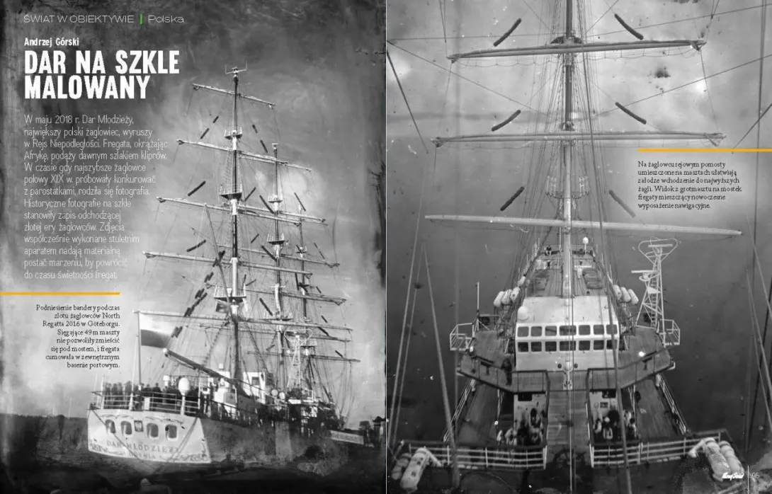 W najnowszym, majowym numerze miesięcznika "Poznaj Świat", znakomity fotoreportażowy materiał poświęcony naszej fregacie - plon rejsu na "Darze Młodzieży" Andrzeja Górskiego, entuzjasty XIX-wiecznej fotografii.