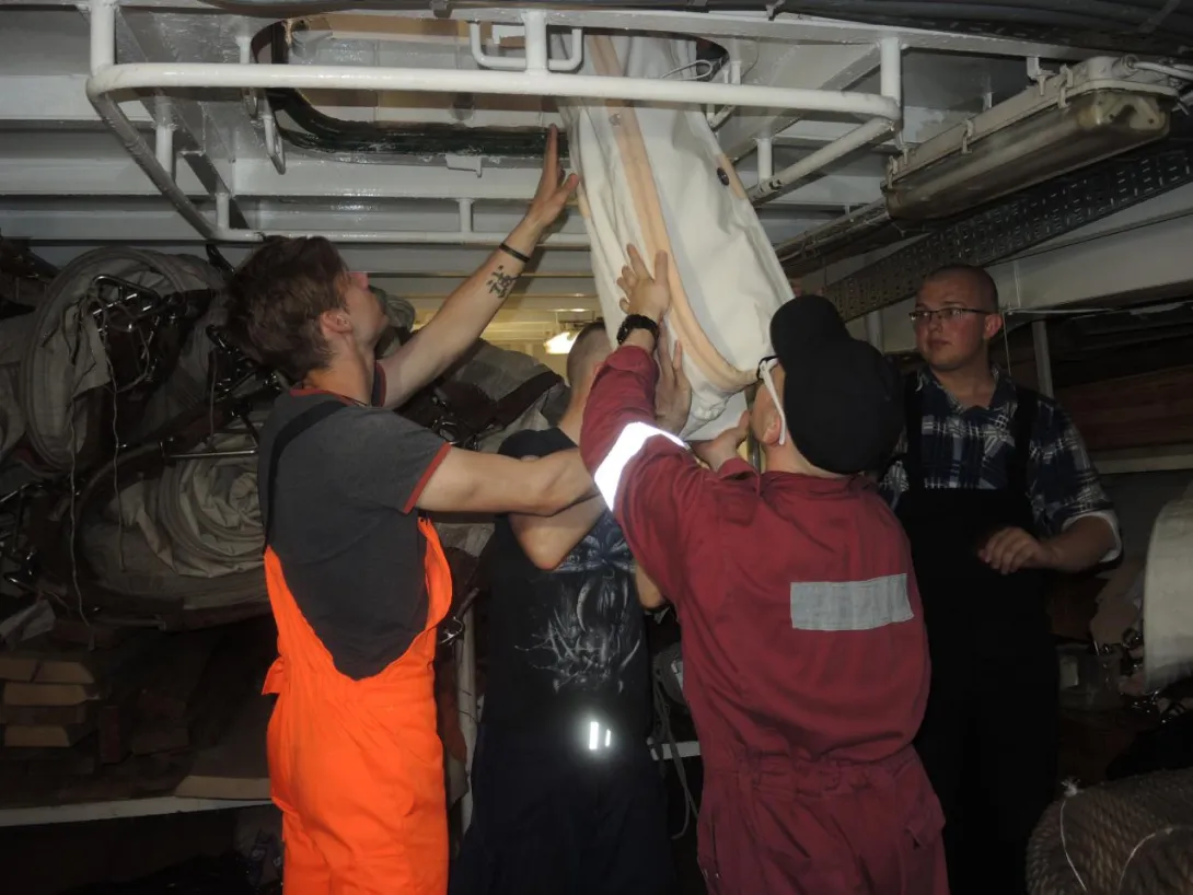 Młodzi praktykanci od wczoraj poznają smak codziennej marynarskiej służby. Prace bosmańskie, rozładunek zaopatrzenia, sztauowanie, pucowanie mosiądzów, służby na pokładzie i w kuchni. Na razie niewiele ma to wspólnego z wielką morską przygodą, ale już w niedzielne południe, poczują emocjonujący smak pożegnań, staną się uczestnikami, współtwórcami historii biało-czerwonej bandery.