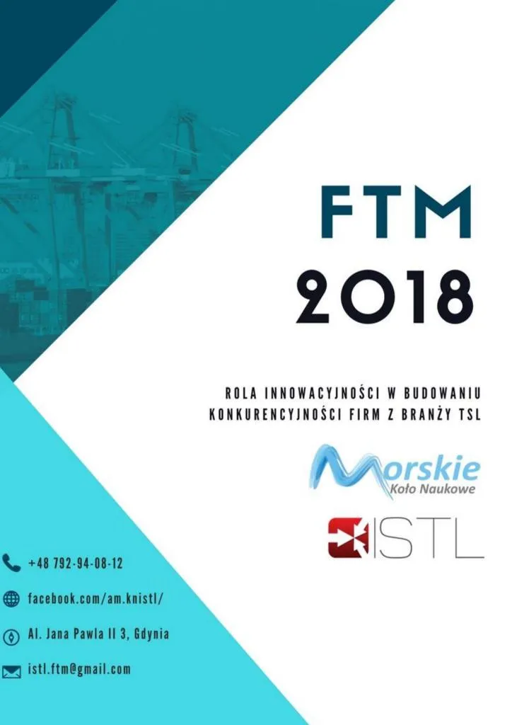 W dniach 22 – 23 marca 2018 r. w budynku Wydziału Nawigacyjnego Akademii Morskiej w Gdyni odbędzie się konferencja Forum Transportowe Młodych (FTM) organizowana przez Koło Naukowe ISTL oraz Morskie Koło NaukoweFTM jest ogólnopolską studencką konferencją naukową podczas której studenci, stojący u progu swoich karier mają możliwość przedstawić swoje badania oraz wysłuchać i porozmawiać z liderami branży TSL.