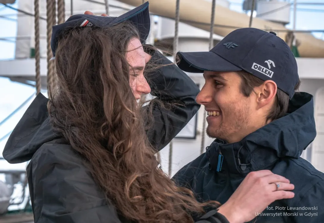 Przedwczoraj po podniesieniu bandery Zosia (niezastąpiona asystentka) przypomniała mi że są dwudzieste urodziny Normana Kowalewskiego i że... Oniemiałem! Dwoje laureatów zaręczyło się! Tego jeszcze chyba na Darze nie było. Szczęśliwcami są Magda Kozik i Janek Wawak. Tak więc odśpiewano dwa razy "sto lat", a po drugim nie obyło się bez przyśpiewek (trochę przedwczesnych) weselnych i gromkiego "gorzko". Okazuje się że narzeczeni jeszcze nie wszystkich bliskich  zawiadomili, wiec jest szansa na niespodziankę. Może namówimy księdza Krzysztofa na prowadzenie "nauk przedślubnych", może będzie więcej chętnych?