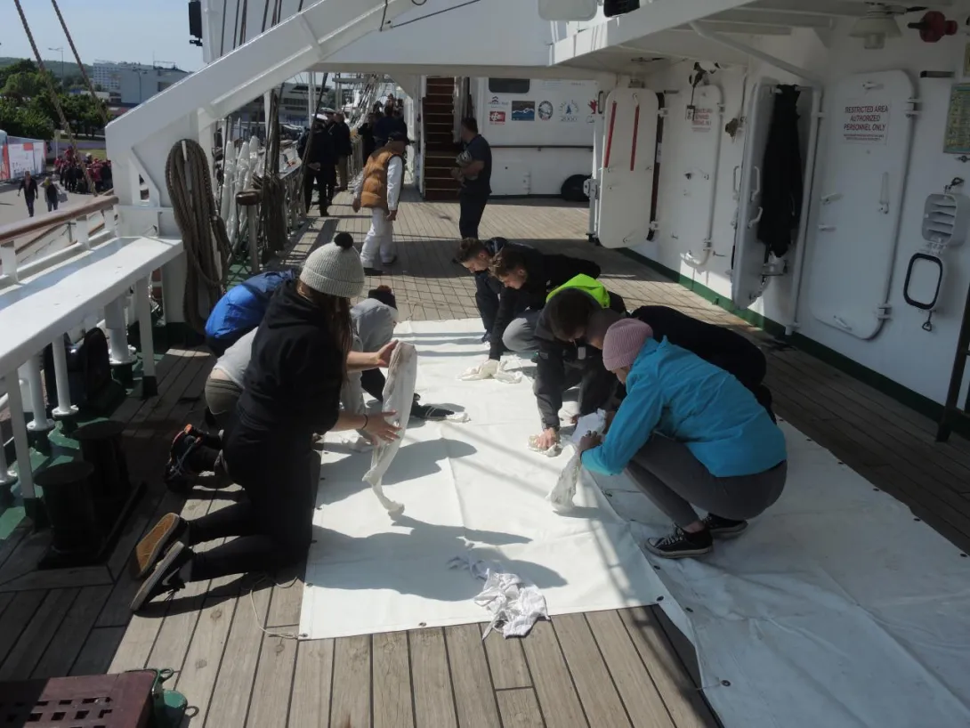 A poza tym na pokładzie normalny ruch - sprzątanie, czyszczenie, klarowanie ....... i wszechobecne ekipy radio-telewizyjno-filmowo-prasowe. Wywiady, pytania, pytania, pytania..... Na szczęście ratownicy z SAR-u są na wyciągnięcie ręki.