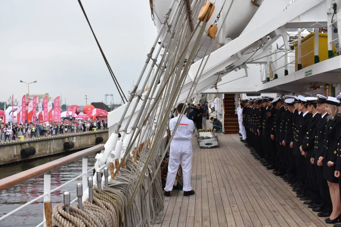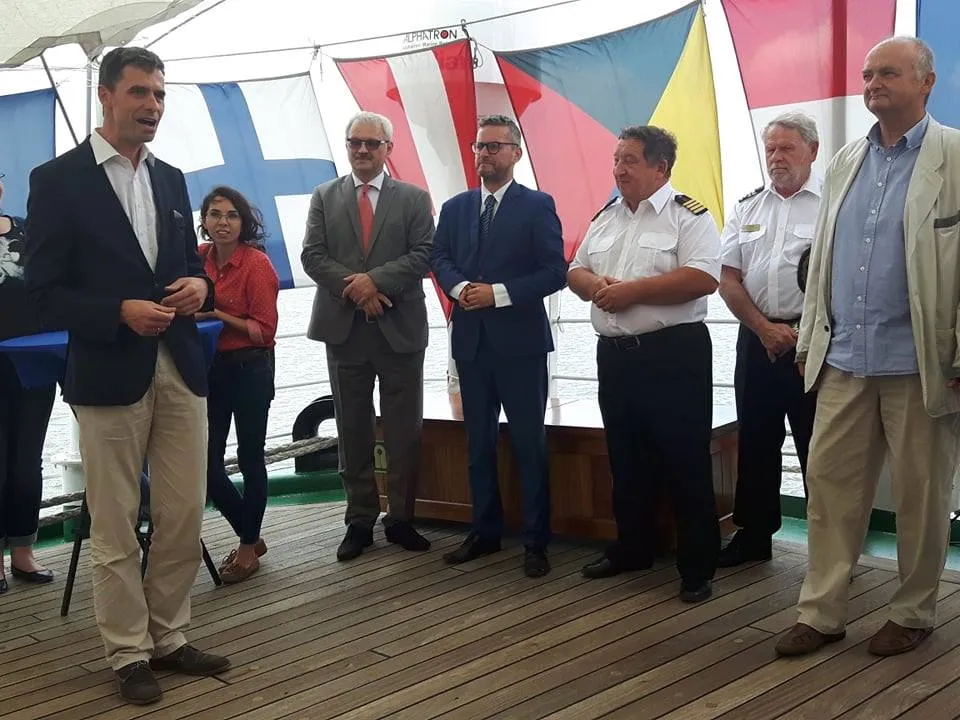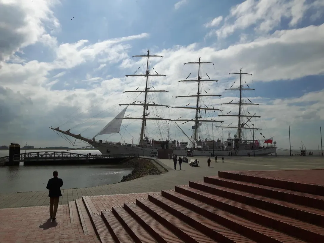 Oficjalnym punktem pobytu w Bremerhaven była wizyta na pokładzie wiceministra Gospodarki Morskiej i Żeglugi Śródlądowej Grzegorza Witkowskiego. Uczestniczył w spotkaniu z władzami zaprzyjaźnionej z AMG miejscowej Hochschule Bremerhaven z rektorem profesorem Peterem Ritzenhoffem. Gości podejmowali komendant kpt.ż.w. Ireneusz Lewandowski oraz prorektor ds. morskich AMG, dr hab. inż. kpt.ż.w. Henryk Śniegocki. Kontakty naukowe i dydaktyczne obu uczelni liczą już sobie 40 lat. Pierwsza wizyta w Bremerhaven naszego żaglowca - fregaty "Dar Pomorza" - miała miejsce w 1977 roku.