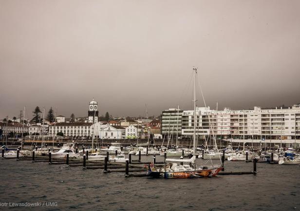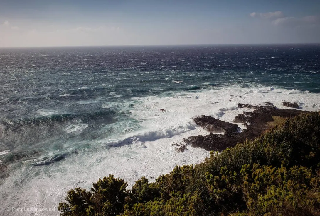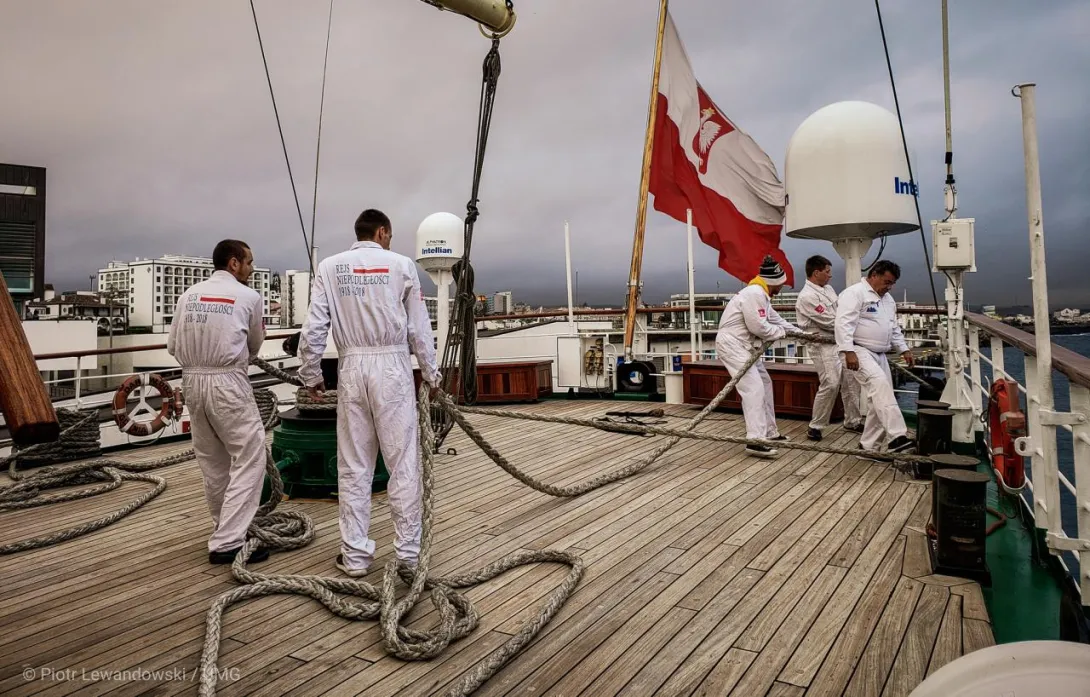 Za nami zielone Azory. Trasę z Nassau do wysp Azorskich pokonaliśmy w dużej mierze pod żaglami i to w dobrym stylu, bo dotarliśmy tam na dwa dni przed planem. Nie udało się ze względu na warunki pogodowe podpłynąć pod mniejsze wyspy, ale największą Sao Miguel opłynęliśmy dookoła. Warto było – słoneczny dzień, rześki wiaterek, „Dar” pod żaglami i Wyspa! Brzegi wysokie, klifowe, skaliste, zwieńczone zielonymi łąkami ozdobionymi malowniczymi miedzami, białe domy i kościoły, zadrzewione wzgórza … no i krówki – jak to miło zobaczyć coś co nie pływa. Zakotwiczyliśmy w płytkiej zatoczce, żeby pod osłona wysokiej wyspy przeczekać przed wejściem do portu. Po spokojnej nocy dostaliśmy wiadomość, że albo wchodzimy dzień wcześniej albo dzień później, bo ze względu na spodziewane wysokie fale port będzie 5 marca zamknięty. Weszliśmy wcześniej.