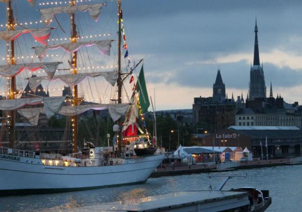 Na redę Le Havre dotarliśmy 05/06 wieczorem i przez cała noc płynęliśmy w górę Sekwany żeby o 0600 zacumować wśród największych żaglowców. Tuż za nami stoi „Siedow”, jest też „Mir”, „Kruzenshtern”, „Mircea”, „Shabab Oman II”, „Cisne Branco”, „Cuauthemoc”, „Belem” i wiele innych. Podobno ma być 50 statków. Żaglowce stoją blisko siebie po obu stronach Sekwany.