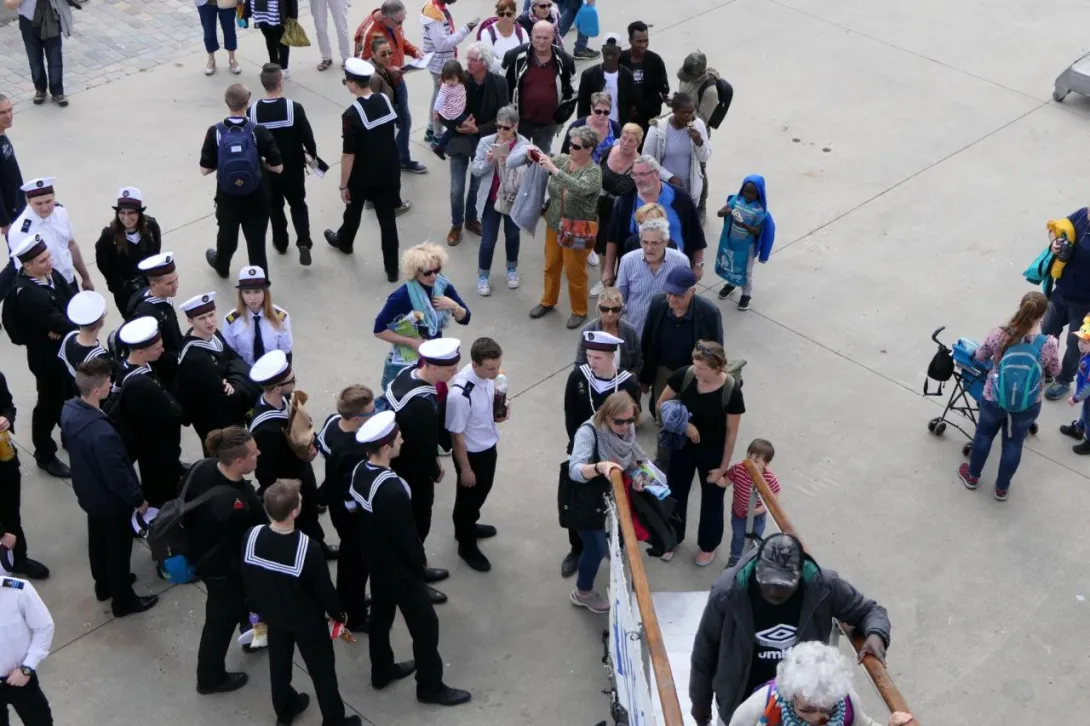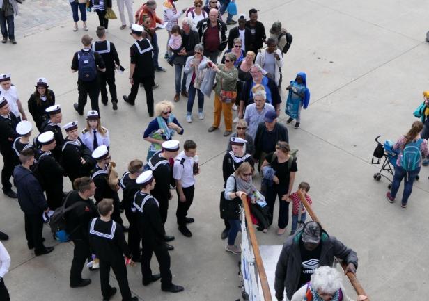 6000 osób. Wśród zwiedzających wielu rodaków (Francuzów polskiego pochodzenia). Mamy sporo zaproszeń na różne imprezy, ale o tym napisze po fakcie. Najwięcej zamieszania jest koło meksykańskiego żaglowca „Cuauhtémoc” - głośna muzyka od rana do wieczora.