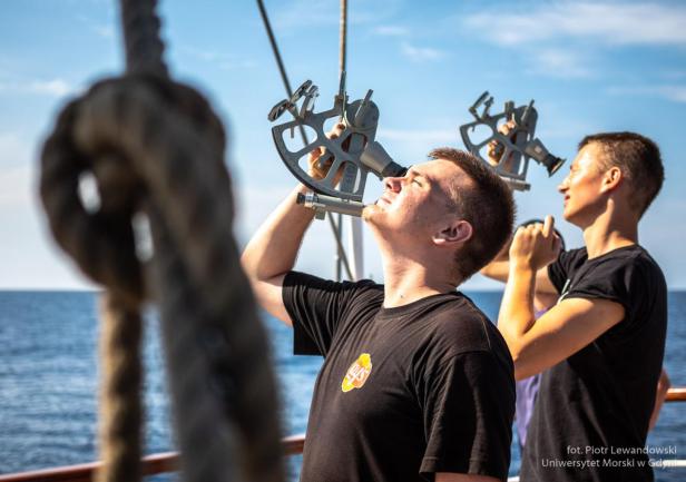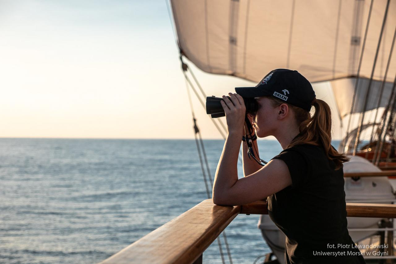 A co robi się na wachcie? Czworo praktykantów na mostku: nawigacyjny, sternik i dwa „oka” (obserwatorzy). Ci ostatni bez względu na pogodę i porę dnia stoją na zewnątrz i obserwują horyzont. Na każdej wachcie jest „bosmański” który pilnuje żeby wszystko grało – to właśnie on/ona wybija „szklanki”, robi inspekcje całego statku i przekazuje polecania od przełożonych. Jest też osoba wyznaczona na wachtę w maszynie.