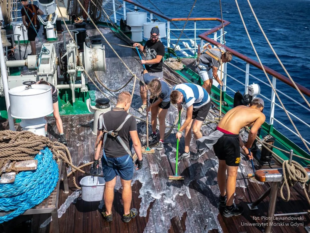 Oczywiście wymienione wcześniej czynności gospodarskie są również wykonywane w morzu. Co dobę przejmuje je inna wachta – kilkanaście osób jest wyłączonych z normalnego trybu i pracują w wyznaczonym miejscu.