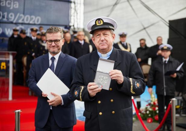Ostatnim punktem uroczystości było wręczenie medalu z okazji 100-lecia odzyskania przez Polskę Niepodległości ufundowanego przez Ministerstwo Gospodarki Morskiej i Żeglugi Śródlądowej. Medal otrzymał Ojciec Edward Pracz.