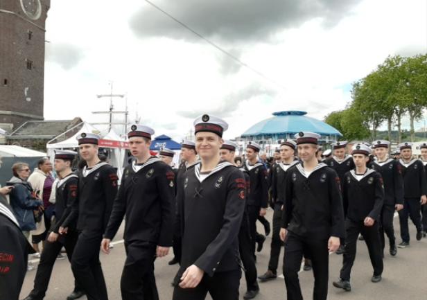 W środę przez Rouen przeszła parada załóg. Na całe szczęście pogoda w miarę dopisała i zaczęło padać dopiero po zakończeniu. Nasi praktykanci dobrze wypadli. Każda załoga występowała we własnej „choreografii” od perfekcyjnego marszu do chaotycznych tańców. Paradzie towarzyszyło kilka orkiestr – typowych dętych, szkockich oraz omańskich dudziarzy i marszowych bębnów.