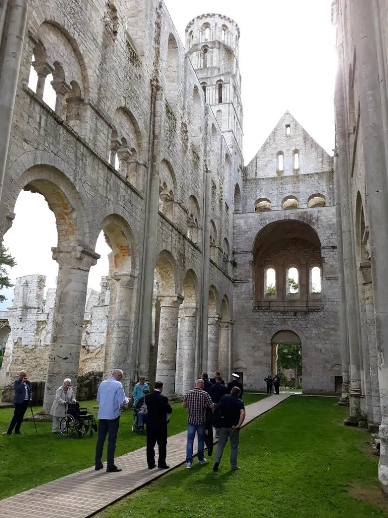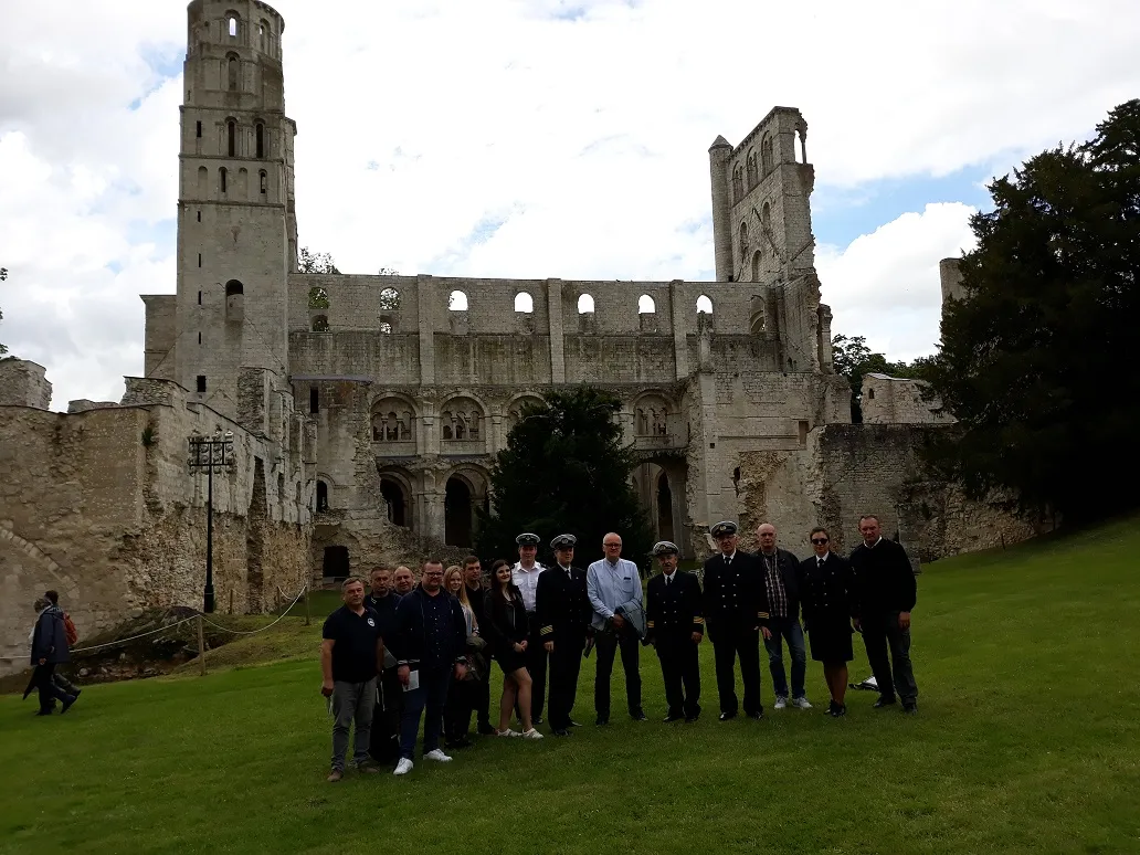 Każdy żaglowiec ma przydzielonego opiekuna spośród okolicznych miasteczek i wsi. Naszym jest nadsekwańska Vatteville la Rue. We wtorek odwiedził nas Burmistrz wraz z pięćdziesięciorgiem dzieci z tamtejszej szkoły – 9/10-latków. Wczoraj połowa załogi pojechała z rewizytą. Zostaliśmy bardzo serdecznie przyjęci. Po drodze pokazano nam „najpiękniejsze ruiny we Francji”(bez ironii) – Jumieges Abbey - przepiękny kompleks klasztorny częściowo zburzony w czasach Rewolucji Francuskiej. Z okien autobusu mogliśmy nacieszyć oczy pięknymi krajobrazami Normandii.