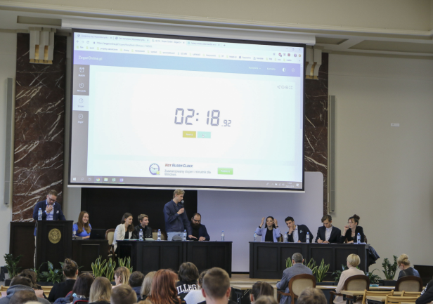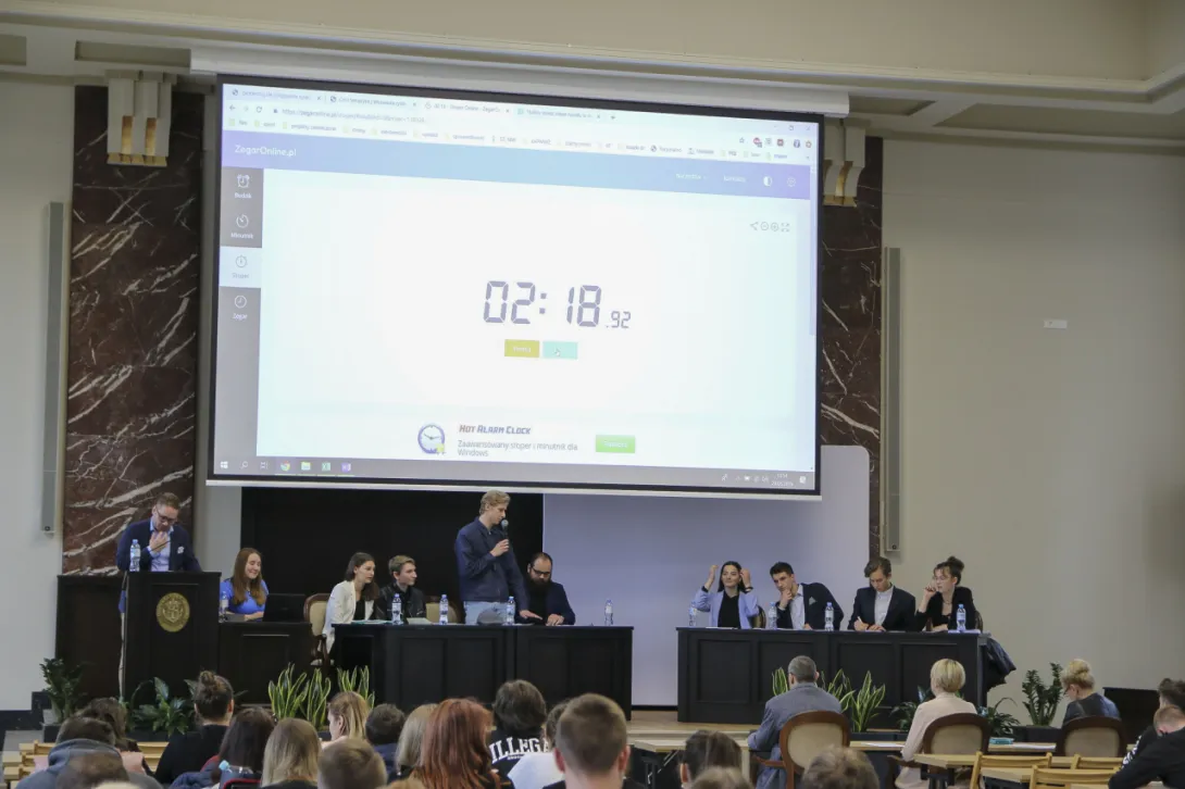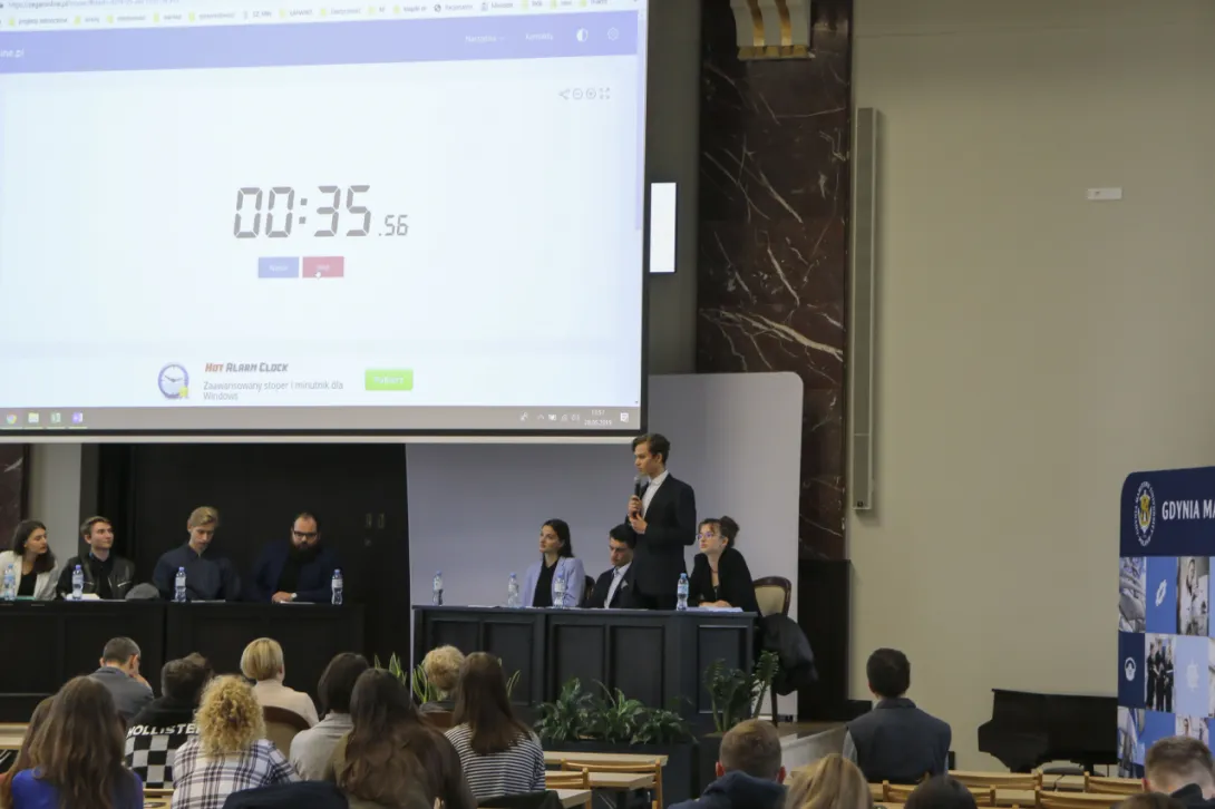 W role mówców wcielili się studenci pierwszego roku kierunku Innowacyjna Gospodarka. Marszałkiem debaty był dr hab. Adam Przybyłowski, prof. UMG, który poprowadził debatę. Natomiast Sekretarzem debaty była mgr Ida Adamczak.