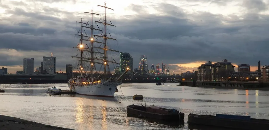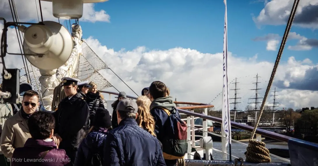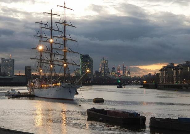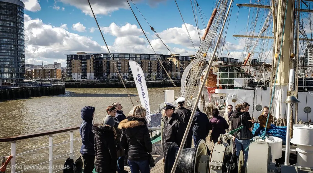 Wyszliśmy z Londynu. Znów Polonia nie zawiodła i musieliśmy przedłużać zaplanowane godziny zwiedzania statku. Było sporo ciekawych spotkań i rozmów. Gościliśmy na statku grupę polskich kombatantów, ministra Marka Gróbarczyka (MGMiŻŚ), przedstawicieli polskich portów i PŻM. Pogoda nas zaskoczyła, bo było zimno, a już dwa tygodnie temu pisano, ze w Londynie jest wiosna. „Dar” stał zacumowany do beczek (boi) na Tamizie i połączenie z lądem zapewniały wynajęte motorówki. Ze statku mieliśmy widok na pięknie pochylone maszty starszej siostry „Daru” - „Cutty Sark” - jednego z najszybszych kliperów w historii żaglowców. Naszą delegację gościła miejscowa Polonia, byliśmy także na koncercie Kat Carr. W ostatni wieczór zaproszono nas na przyjęcie wydane przez Port Gdynia w Old Royal Naval College - przepięknej, zdobionej freskam sali.