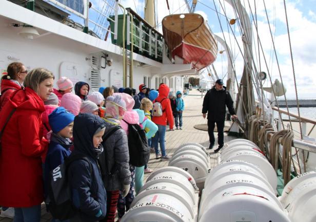 Przyszli marynarze z Godziszewa z wizytą na Darze Młodzieży