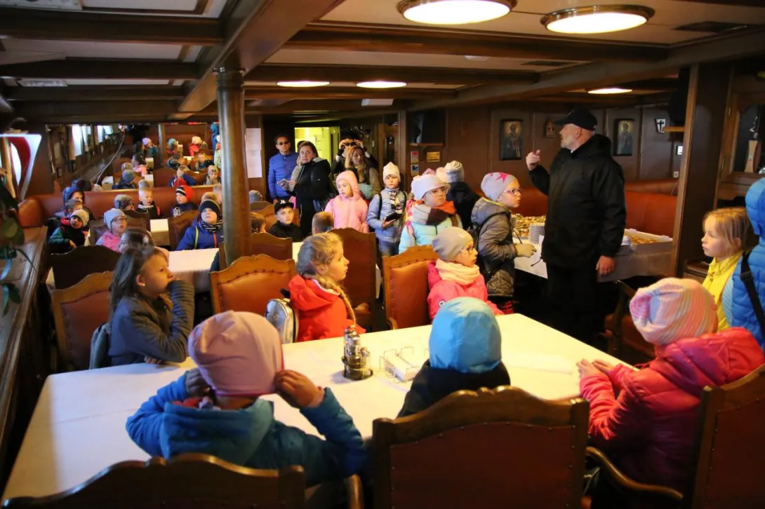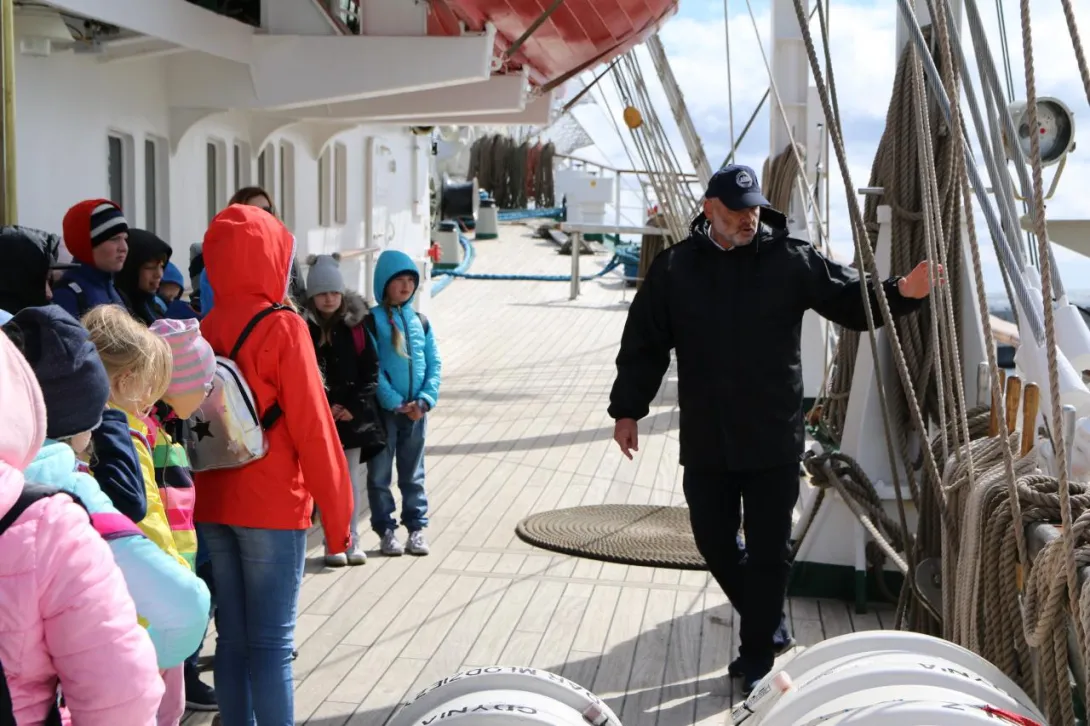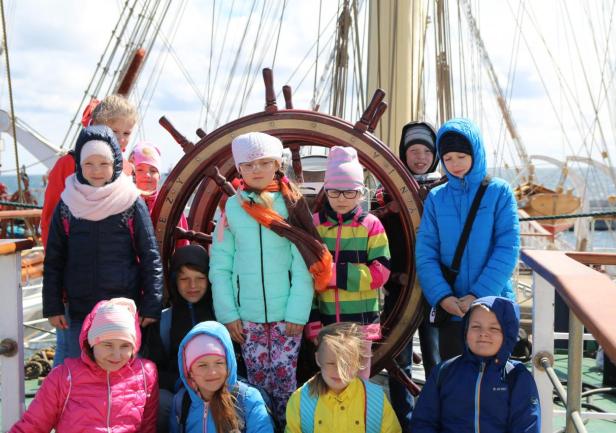 W dniu 14 maja 2019 roku gościliśmy na Darze Młodzieży uczniów ze Szkoły Podstawowej im. ks. Franciszka Sawickiego w Godziszewie. Uczniowie przywitani zostali przez Komendanta Daru Młodzieży, kpt. ż.w. Pana Rafała Szymańskiego. Po pokładzie statku oprowadził ich Oficer Tomasz Maracewicz, który opowiedział o histori statku, praktykach morskich i podróżach. Po słodkim poczęstunku w mesie załogowej uczniowie spotkali się z prof. Januszem Zarębskim, Rektorem Uniwersytetu Morskiego w Gdyni, który wręczył im drobne, pamiątkowe upominki.