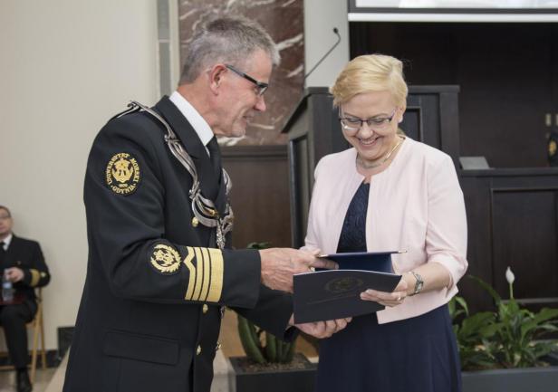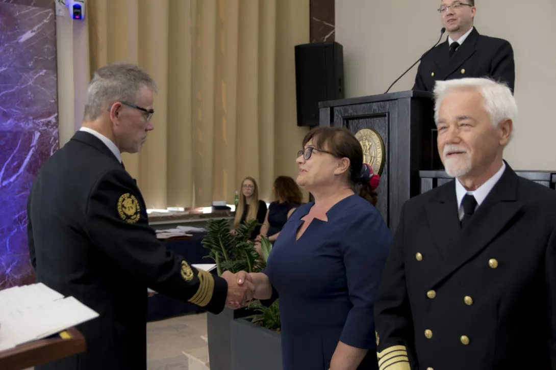 JM Rektor przyznał „Medal Zasłużony dla Szkolnictwa Morskiego” Ministrowi Gospodarki Morskiej i Żeglugi Śródlądowej – Markowi Gróbarczykowi – absolwentowi naszej Uczelni. Medal w imieniu Pana Ministra odebrała Pani Anna Moskwa – Podsekretarz stanu w Ministerstwie Gospodarki Morskiej i Żeglugi Śródlądowej.