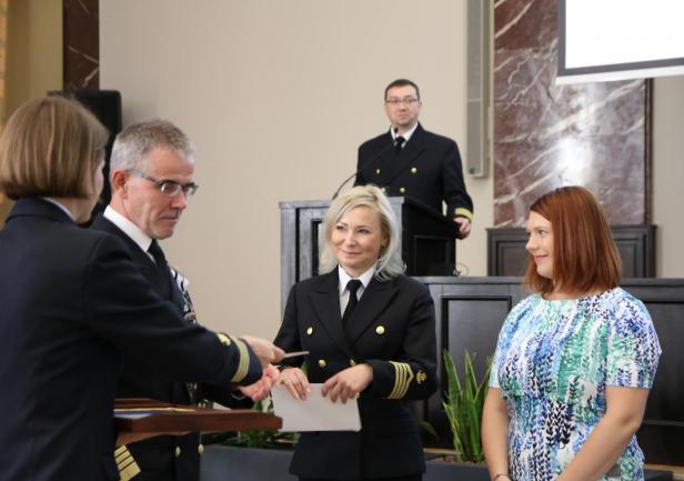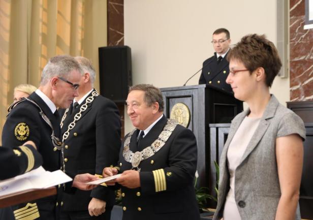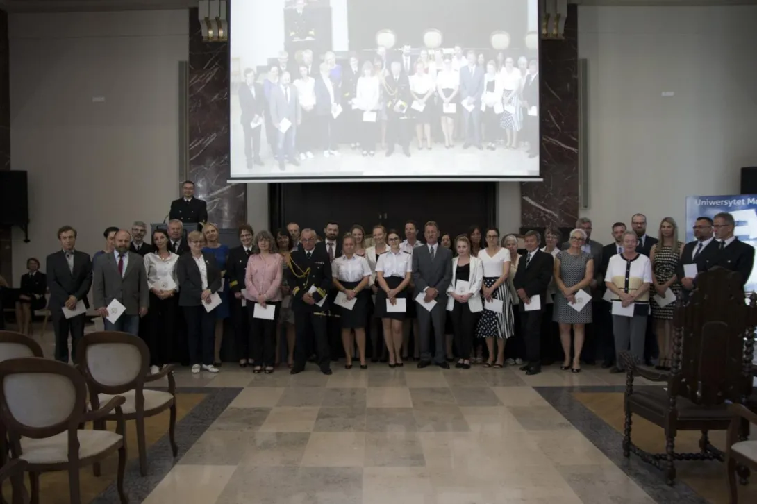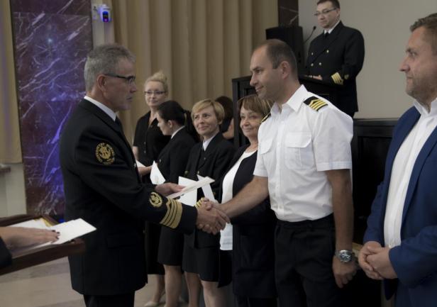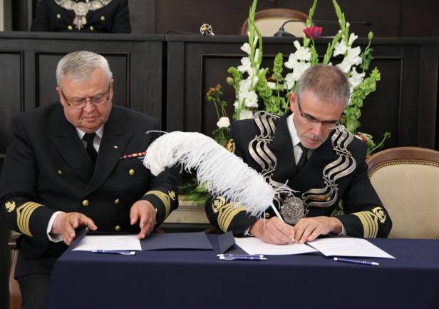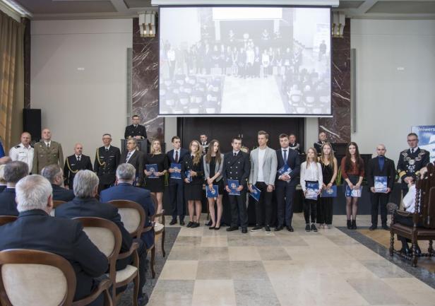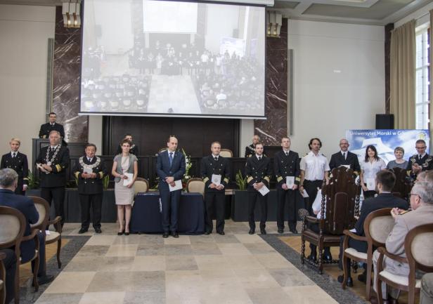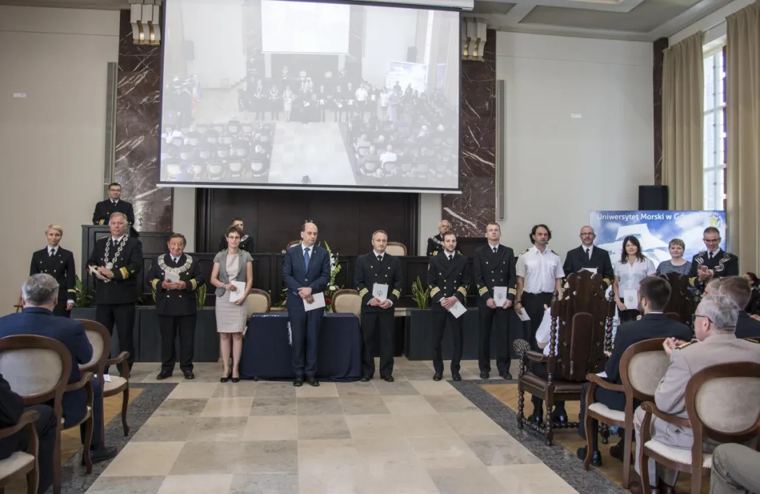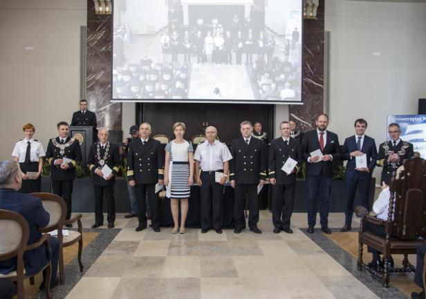 W trakcie uroczystego posiedzenia Senatu JM Rektor wraz z Szefem Wydziału Mobilizacji i Uzupełnień Wojewódzkiego Sztabu Wojskowego, ppłk. Pawłem Górskim i ppor.mar. Krzysztofem Geblerem z Wojskowej Komendy Uzupełnień w Gdyni  wręczyli zaświadczenia studentom, którzy ukończyli szkolenie teoretyczne Legii Akademickiej oraz podziękowania dla osób, które te szkolenie przeprowadzili. Legia Akademicka to pilotażowy program ochotniczego szkolenia wojskowego studentów realizowany przez Ministerstwo Obrony Narodowej. Uniwersytet Morski w Gdyni przystąpił do programu przygotowując, przede wszystkim studentów UMG, do szkolenia w wybranych jednostkach wojskowych.