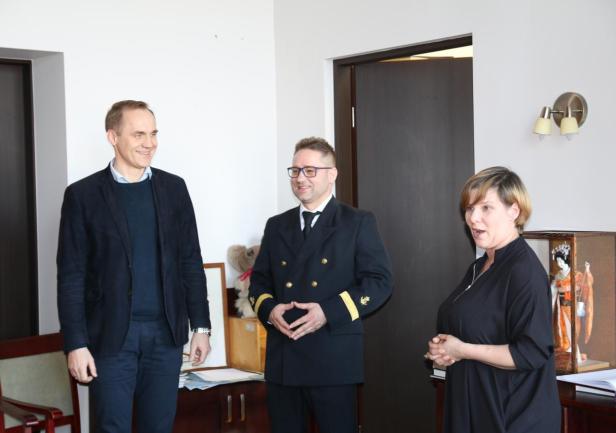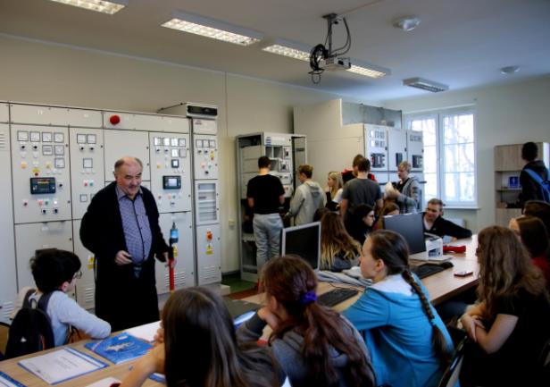 „Młodzi odkrywcy” odwiedzili również symulator elektrowni okrętowej w Katedrze Elektroenergetyki Okrętowej na Wydziale Elektrycznym. Inżynier Zenon Troka zapoznał ich z zasadami działania elektrowni okrętowej i pokazywał im silniki elektryczne sprzężone z prądnicami, które symulują pracę diesla. Punktem kulminacyjnym była wizyta w Sali Tradycji, gdzie uczniowie – dzięki prezentacji p. kustosz mgr Ewy Otremby - zapoznali się z historią oraz aktualnymi informacjami dotyczącymi funkcjonowania Uczelni.  Żywo reagowali na relacje dotyczące Rejsu Niepodległości Daru Młodzieży, a część z nich wyraziła nawet zainteresowanie studiami w naszej Alma Mater w przyszłości.