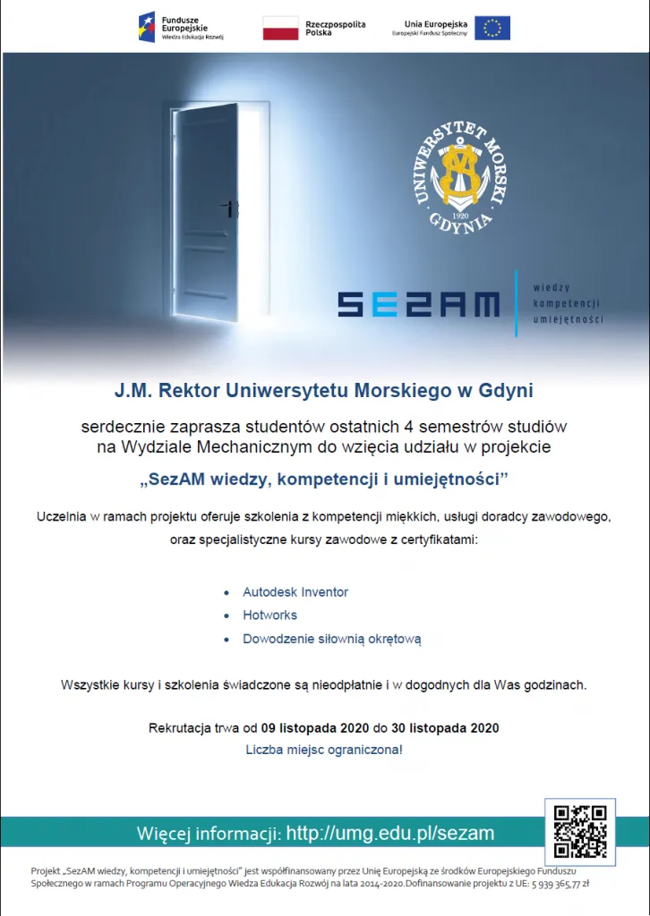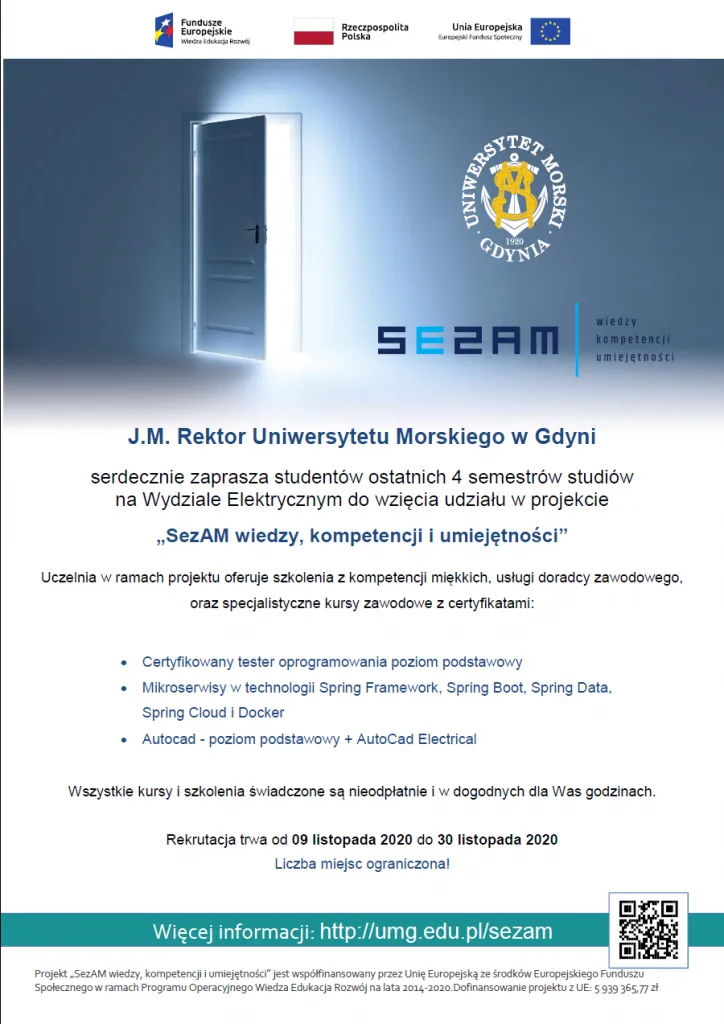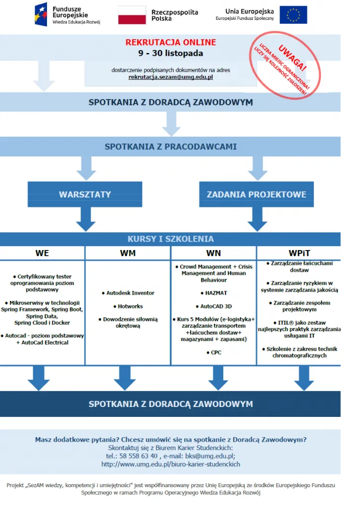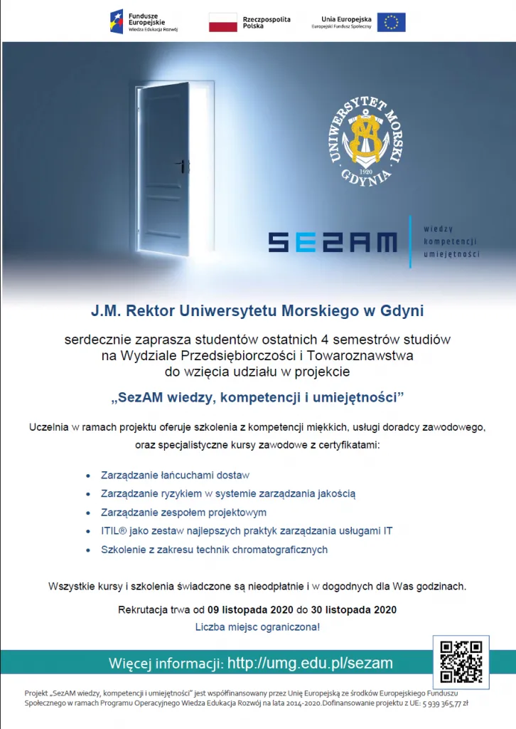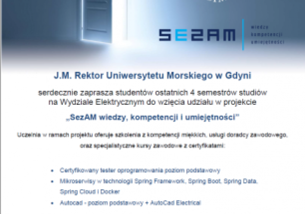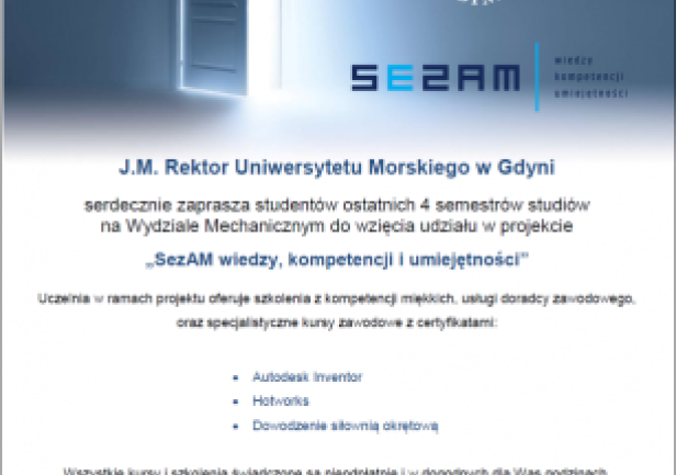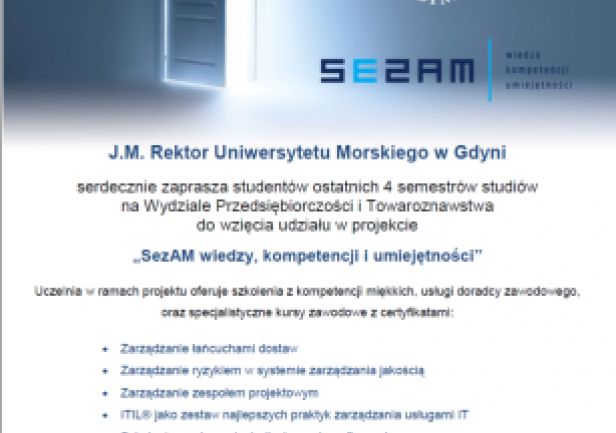 Zapraszamy Studentów ostatnich semestrów do wzięcia udziału w projekcie   „SezAM wiedzy, kompetencji i umiejętności” !