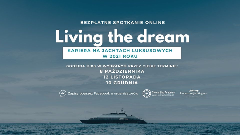 Jesteś zainteresowana/y rozpoczęciem kariery na morzu w jachtingu luksusowym? Jesteś pasjonatem podróżowania oraz poznawania obcych kultur z innej perspektywy? Pragniesz doświadczyć żeglarskiego stylu życia w wydaniu de luxe? Weź udział w spotkaniu online! Gdzie?Online, poprzez Skype, szczegóły dostępu po zgłoszeniu chęci udziału. Kiedy? 12 listopada2021, piątek, godz. 11:00 (czas w Polsce) Dla kogo?