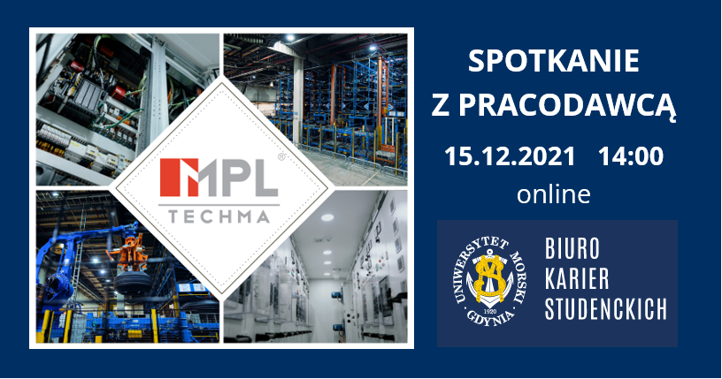 Już w najbliższą środę 15 grudnia o godzinie 14:00 odbędzie się spotkanie online dla Studentów i Absolwentów UMG z firmą MPL TECHMA.