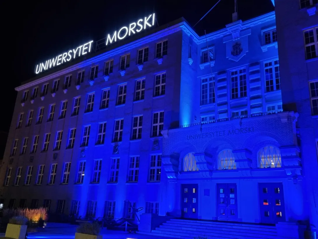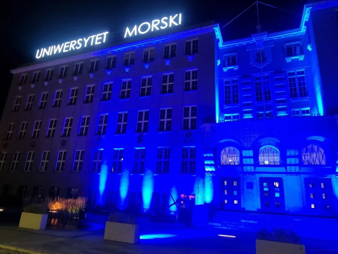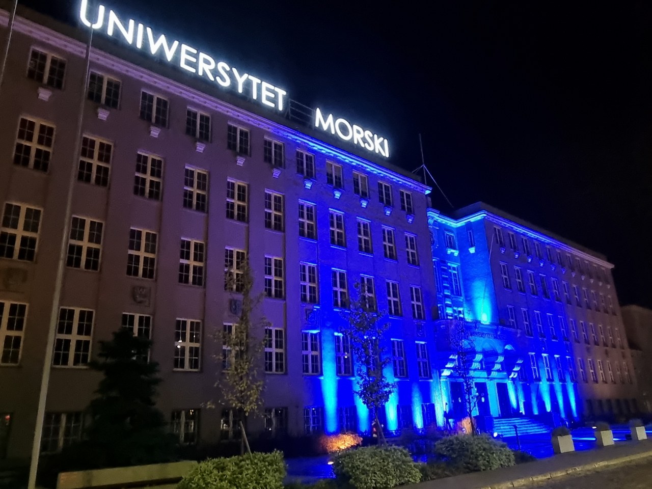 W czwartkowy wieczór 29 września 2022 roku budynek główny Uniwersytetu Morskiego w Gdyni przy ulicy Morskiej rozświetlił się na niebiesko. Uczelnia została podświetlona z okazji Światowego Dnia Morza przypadającego na ostatni czwartek września.