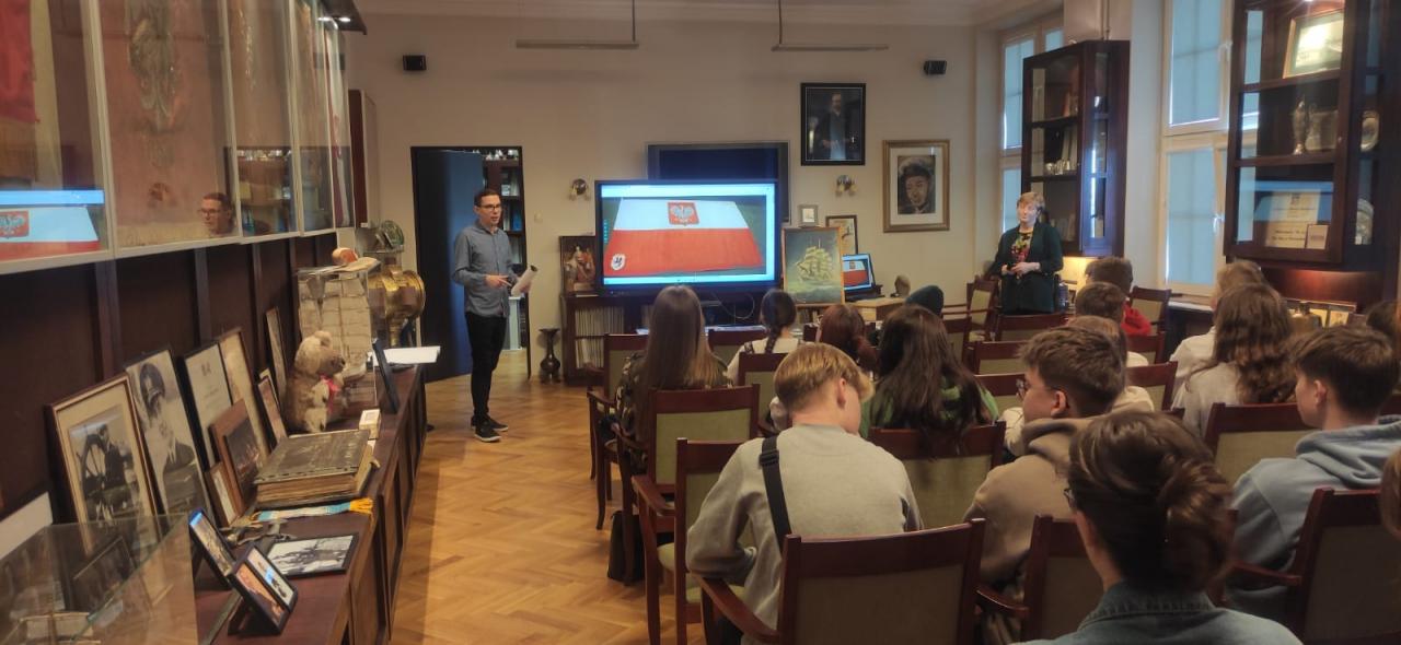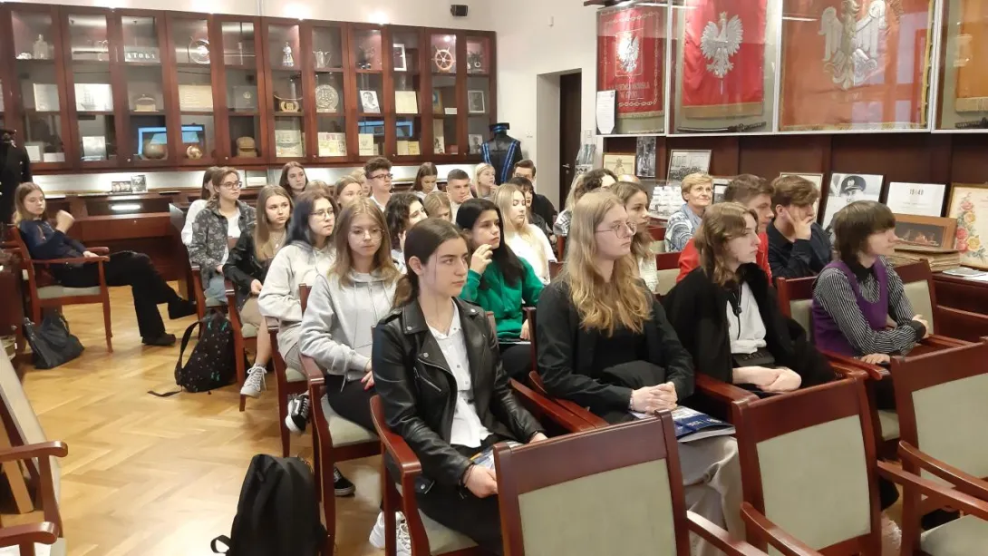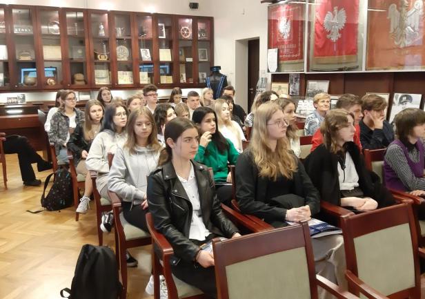 Uczniowie zapoznali się nie tylko z historią uczelni, niektórymi wydarzeniami z historii polskiej floty handlowej w czasie II WŚ czy elementami tradycji morskiej, ale też  z obecnymi warunkami studiowania w murach Alma Mater Mariniensis, które przedstawił p. Michał Kołodziejczak z Biura Promocji i Komunikacji.