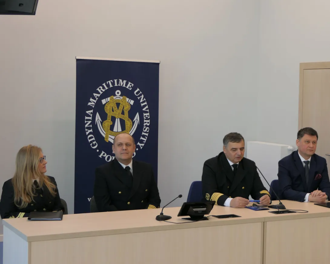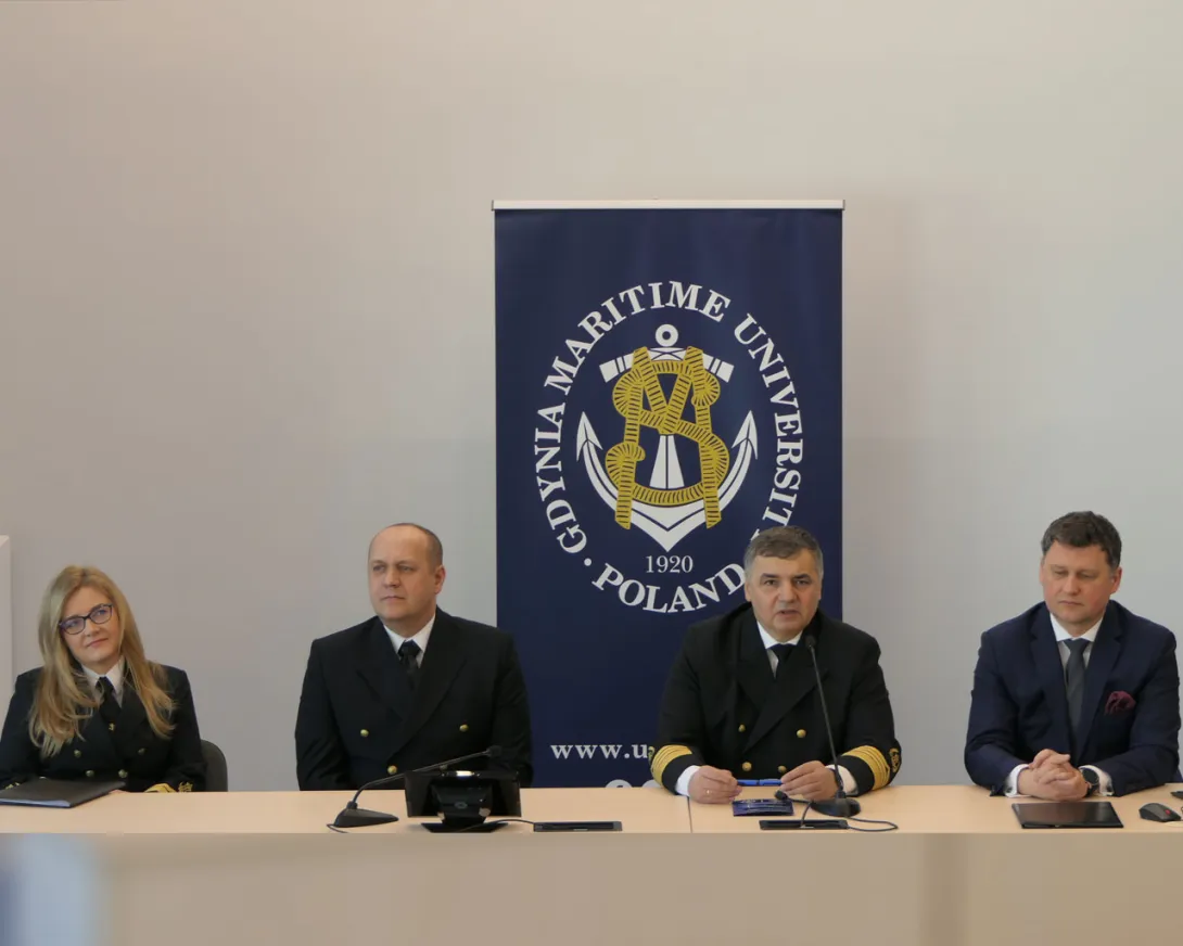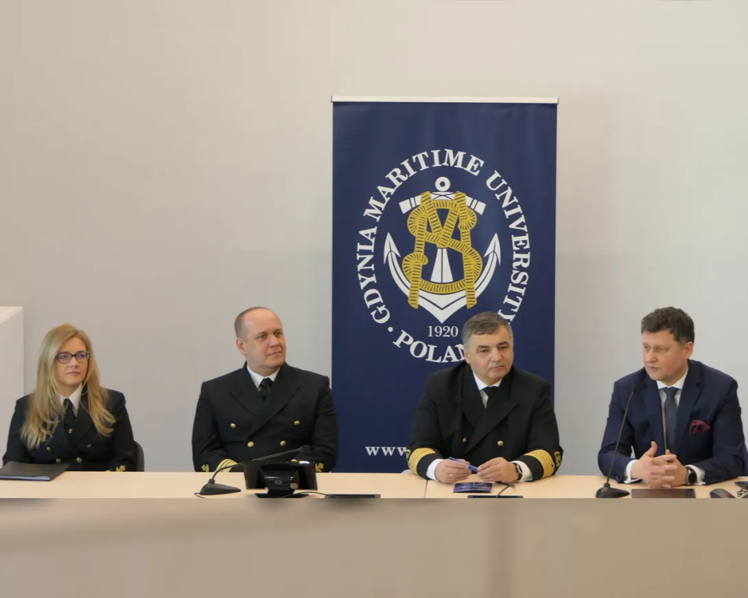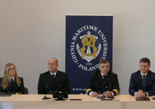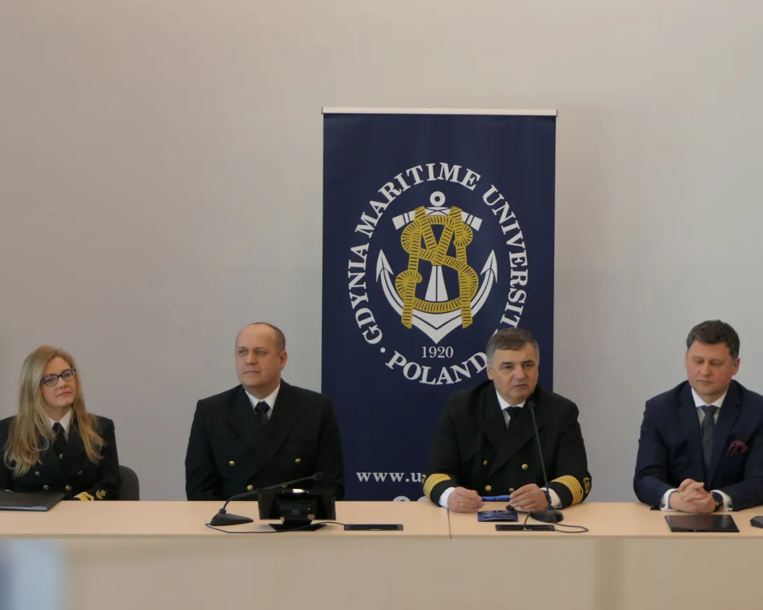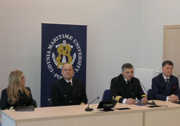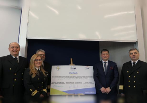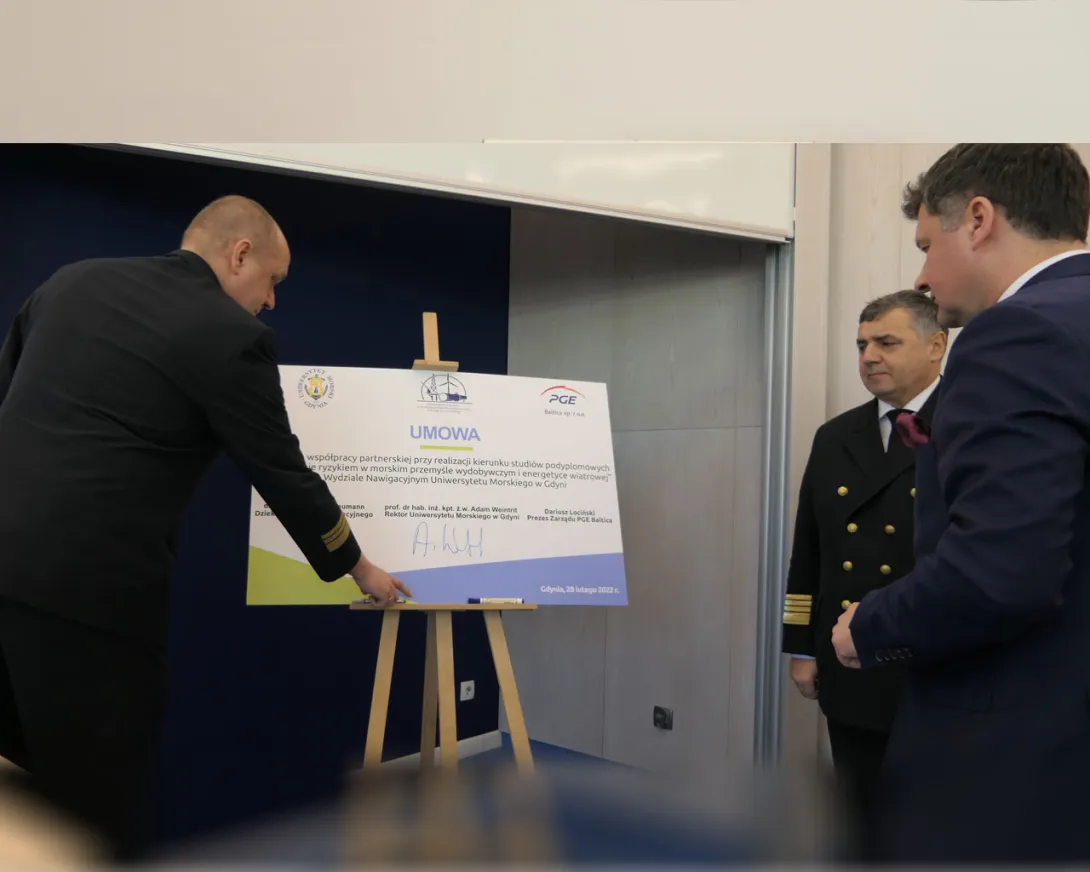 W spotkaniu dotyczącym uroczystego podpisania umowy w dniu 28 lutego 2022 r. udział wzięli: JM Rektor UMG prof. dr hab. inż. kpt. ż.w. Adam Weintrit; Prezes Zarządu PGE Baltica Dariusz Lociński; dr hab. inż. Tomasz Neumann prof. UMG, Dziekan Wydziału Nawigacyjnego i dr hab. Agnieszka Blokus-Dziula prof. UMG, kierownik nowego kierunku studiów.