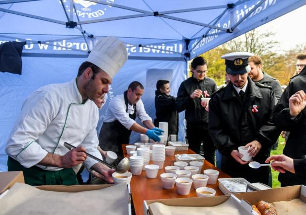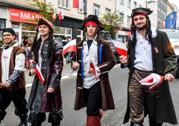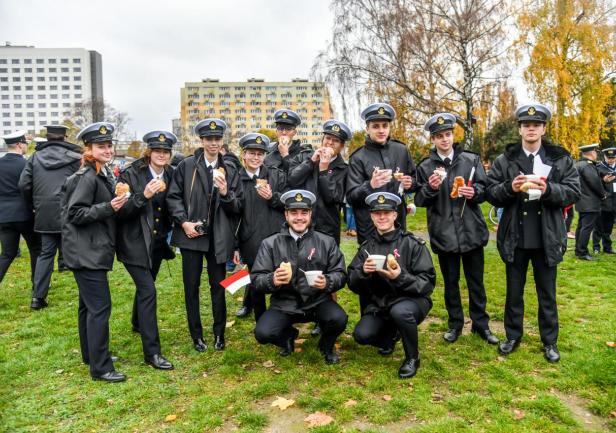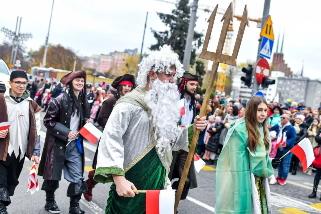 W uformowanym przez nas szyku nie zabrakło Posejdona i jego żony Amfitryty, uczelnianych maskotek, łodzi, kolorowych balonów, flag oraz studentów przebranych w stroje piratów. Parada Niepodległości zakończyła się o godz. 13.00. Wszyscy studenci i pracownicy naszej Uczelni, którzy brali w niej udział, zaproszeni zostali do Parku Rady Europy na przepyszne rogale marcińskie i grochówkę. Wcześniej wykonane zostało tradycyjne zdjęcie grupowe.