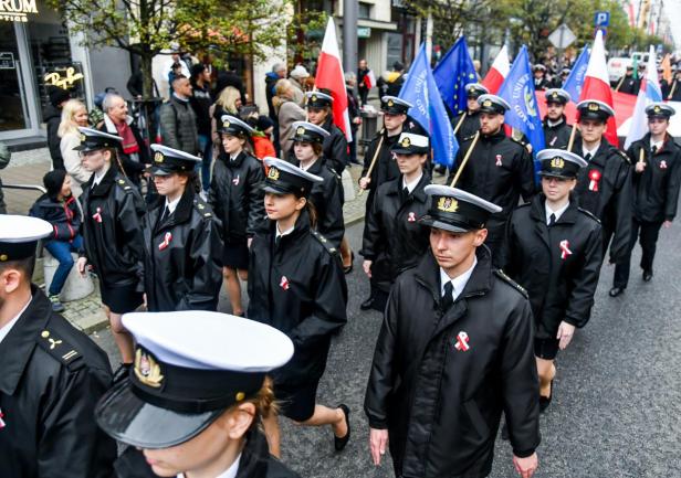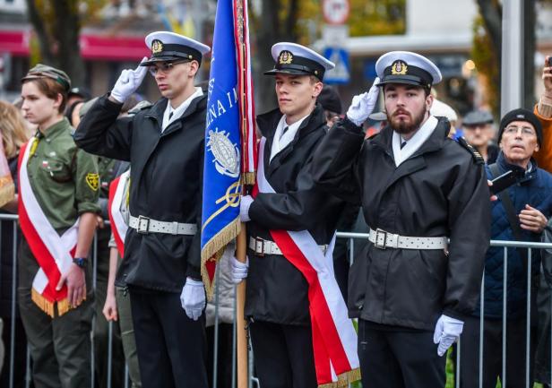 Główną atrakcją tego szczególnego dla Polaków dnia, była gdyńska Parada Niepodległości. W tym roku barwny korowód przeszedł inną trasą niż zazwyczaj – wyruszył z al. Marszałka Piłsudskiego i przeszedł ulicą Świętojańską do Skweru Kościuszki, gdzie przed pomnikiem Polski Morskiej odbyły się oficjalne uroczystości z udziałem władz miasta, dowództwa Marynarki Wojennej i delegacji organizacji społecznych uświetnione wojskową asystą honorową. Z ramienia Uniwersytetu Morskiego w Gdyni, w asyście kompanii reprezentacyjnej, kwiaty pod Pomnikiem Polski Morskiej złożyli: JM Rektor prof. dr hab. inż. kpt. ż.w. Adam Weintrit, Prorektor ds. Współpracy i Rozwoju prof. dr hab. inż. Tomasz Tarasiuk, Prorektor ds. Nauki dr hab. Dariusz Barbucha, prof. UMG, Prorektor ds. Studenckich dr hab. inż. Mirosław Czechowski, prof. UMG, Kanclerz mgr Filip Malata oraz p.o. Przewodniczącego Parlamentu Studentów Jakub Strzelczyk.