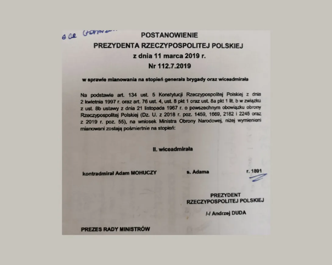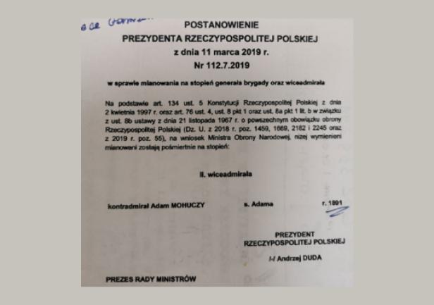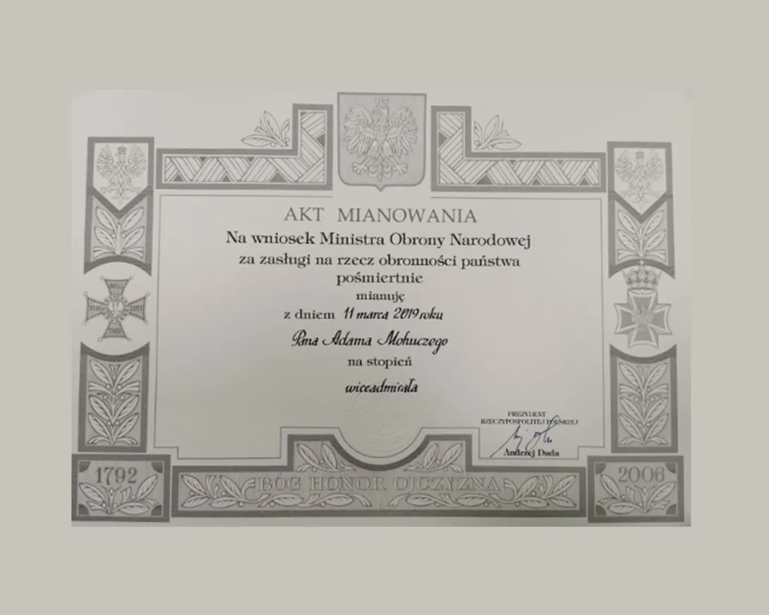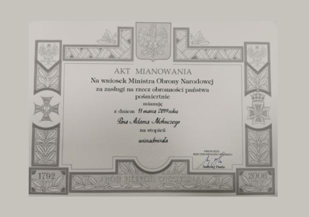 Pośmiertny awans Adama Mohuczego na stopień wiceadmirała