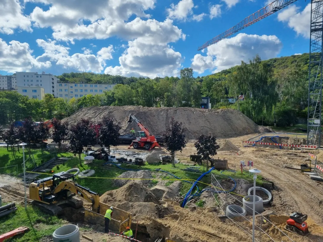 - 9 września został ustawiony żuraw wieżowy, co usprawni i przyspieszy znacznie prace budowlane. Do końca września 2022 roku planowane jest betonowanie całej płyty fundamentowej – informuje Artur Nowak, Inspektor Nadzoru Inwestorskiego, z-ca kierownika działu technicznego UMG.