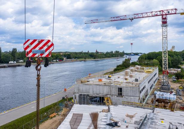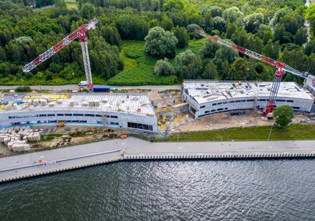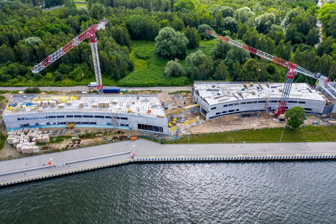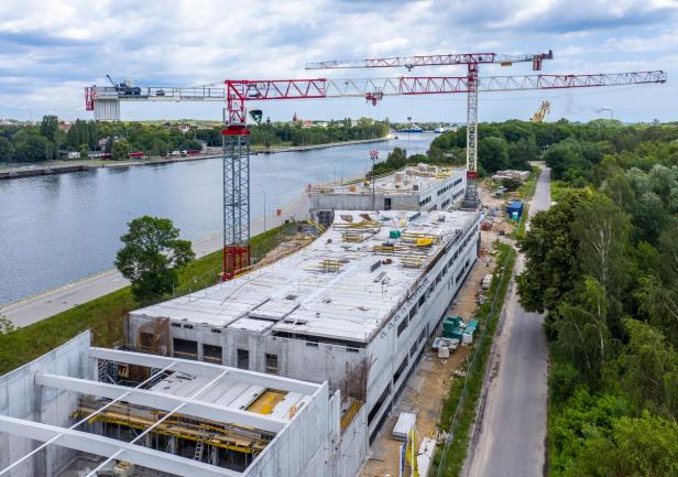Centrum Offshore, inwestycja Uniwersytetu Morskiego w Gdyni realizowana w bliskim sąsiedztwie Twierdzy Wisłoujście w Gdańsku, pnie się w górę.