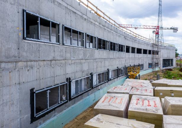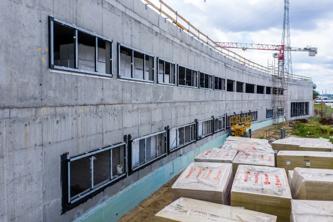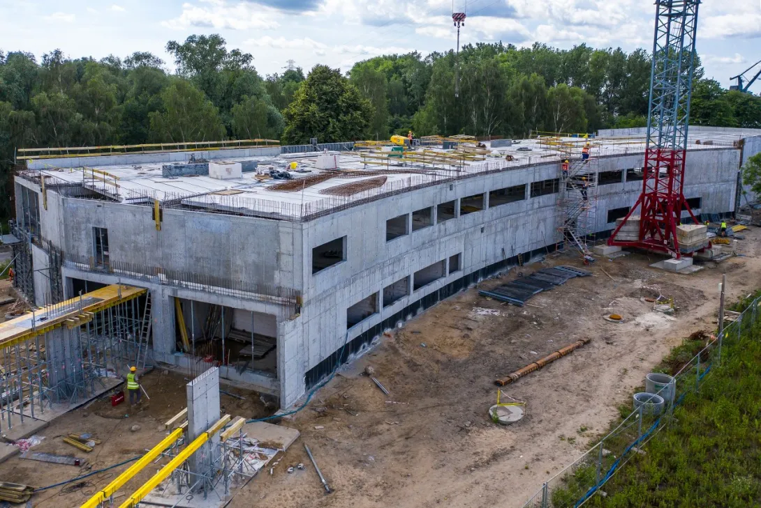 W budynku nr 2 prace stanu surowego zostały już zakończone. Rozpoczęto montaż ślusarki aluminiowej (30% zaawansowania), realizowane jest pokrycie dachu (25% zaawansowania), prowadzone są również prace związane z instalacjami sanitarnymi, tj. instalacja chłodu, grzewcza, deszczowa (20% zaawansowania).