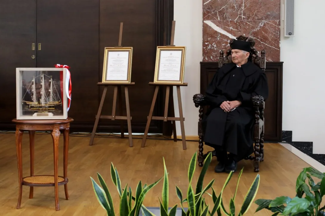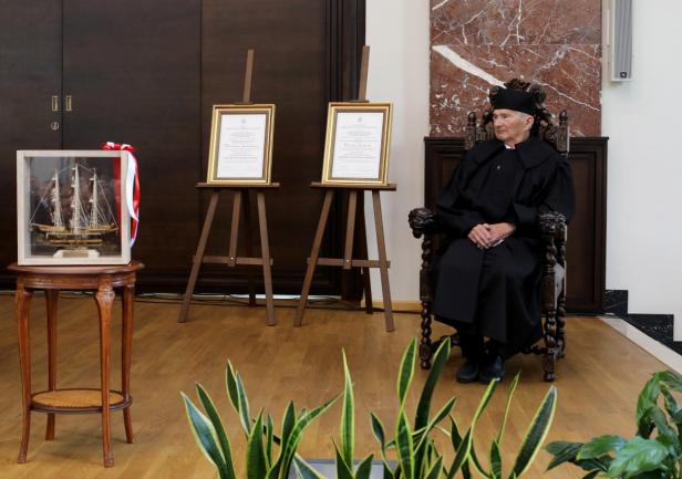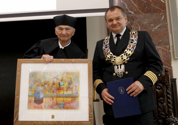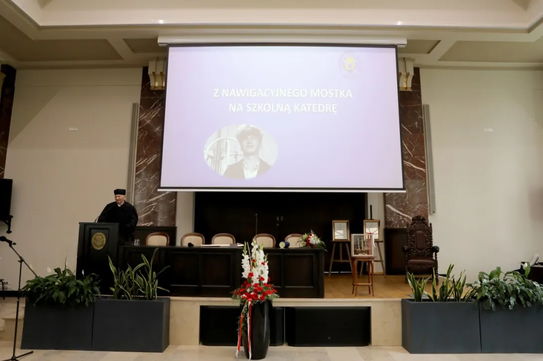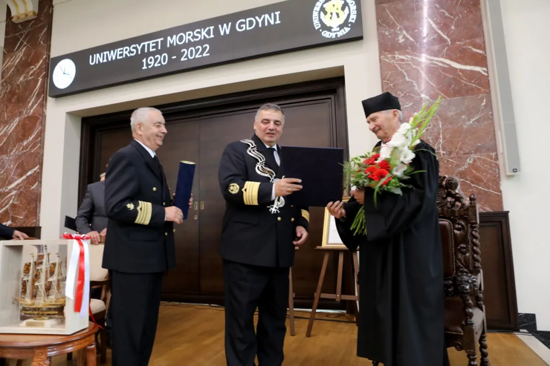 - Serdeczne podziękowania Panie Profesorze za cały wkład, który Pan wniósł w rozwój szkolnictwa morskiego, w kształcenie młodzieży, przede wszystkim z rozwój naszego kraju, bo to jest niezwykle istotne. Przecież to się wszystko tworzyło w latach powojennych, kiedy wszyscy byli pogubieni. (…) Mam prośbę, aby nigdzie Pan nie odchodził, tylko pozostał na tej Uczelni, kształcąc dalej i wnosząc to, co najpiękniejsze dla świata morskiego, a więc wiedzę w zakresie nawigacji. Dziękuję bardzo!